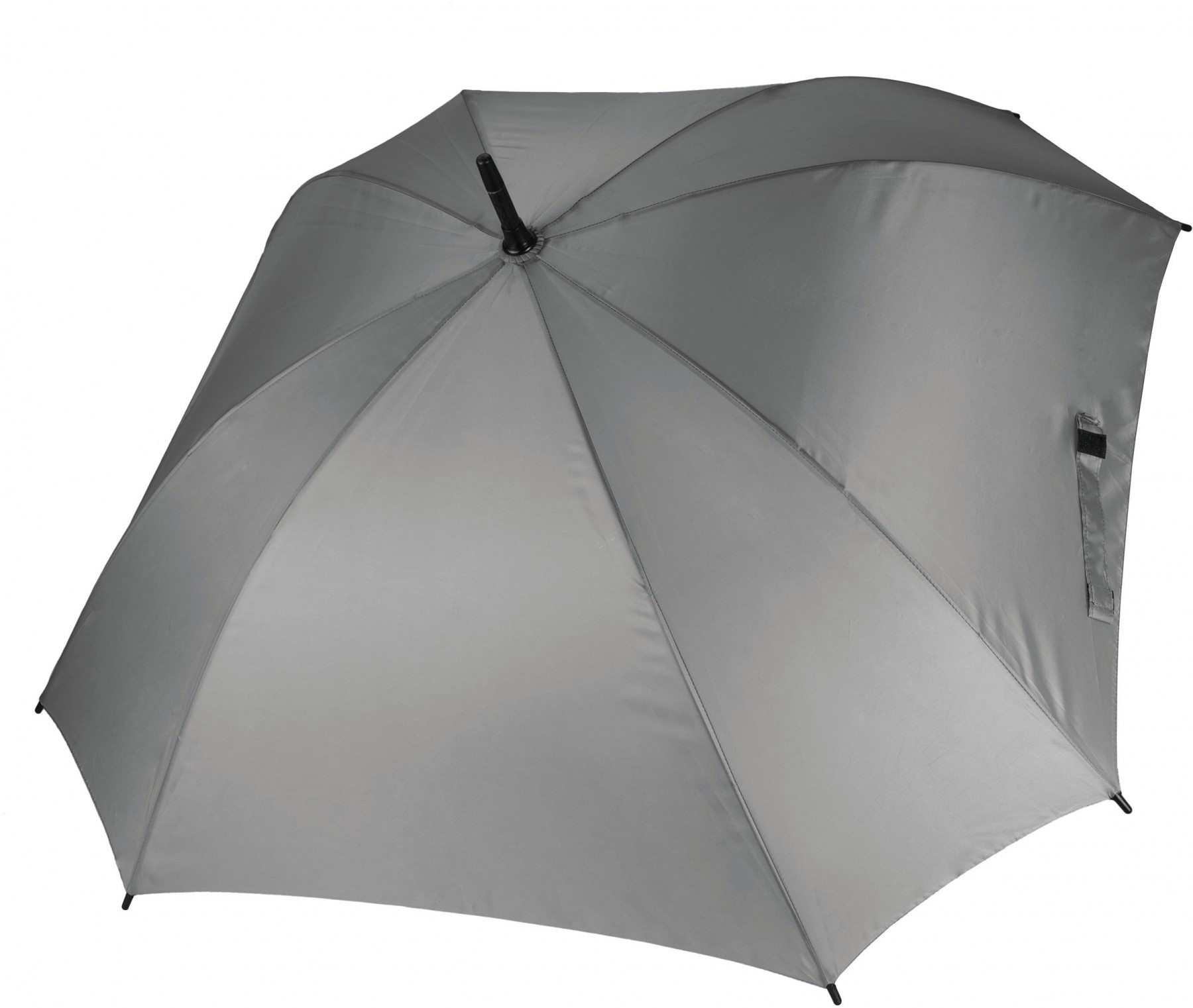 58,5 cm (23"). Parapluie 8 panneaux carré, ouverture manuelle, baleines et mât en fibres de verre, poignée arrondie et embouts de baleine en polypropylène, toile en polyester 210T.