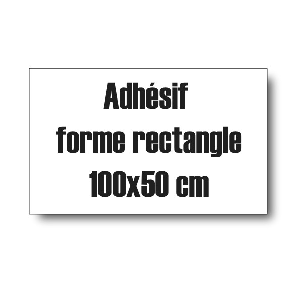 Adhésif forme rectangle 100X50 cm avec impression quadri une maquette vous sera envoyée sous 24h avant le lancement de la production que vous pourrez modifier N'hésitez pas à nous contacter au 0472489263 pour tout renseignement