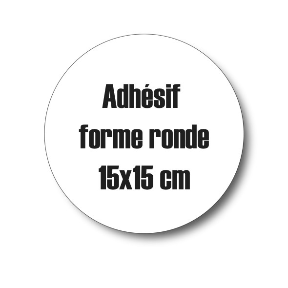 Adhésif à la forme ronde 15x15 cm avec impression quadri une maquette vous sera envoyée sous 24h avant le lancement de la production que vous pourrez modifier N'hésitez pas à nous contacter au 0472489263 pour tout renseignement