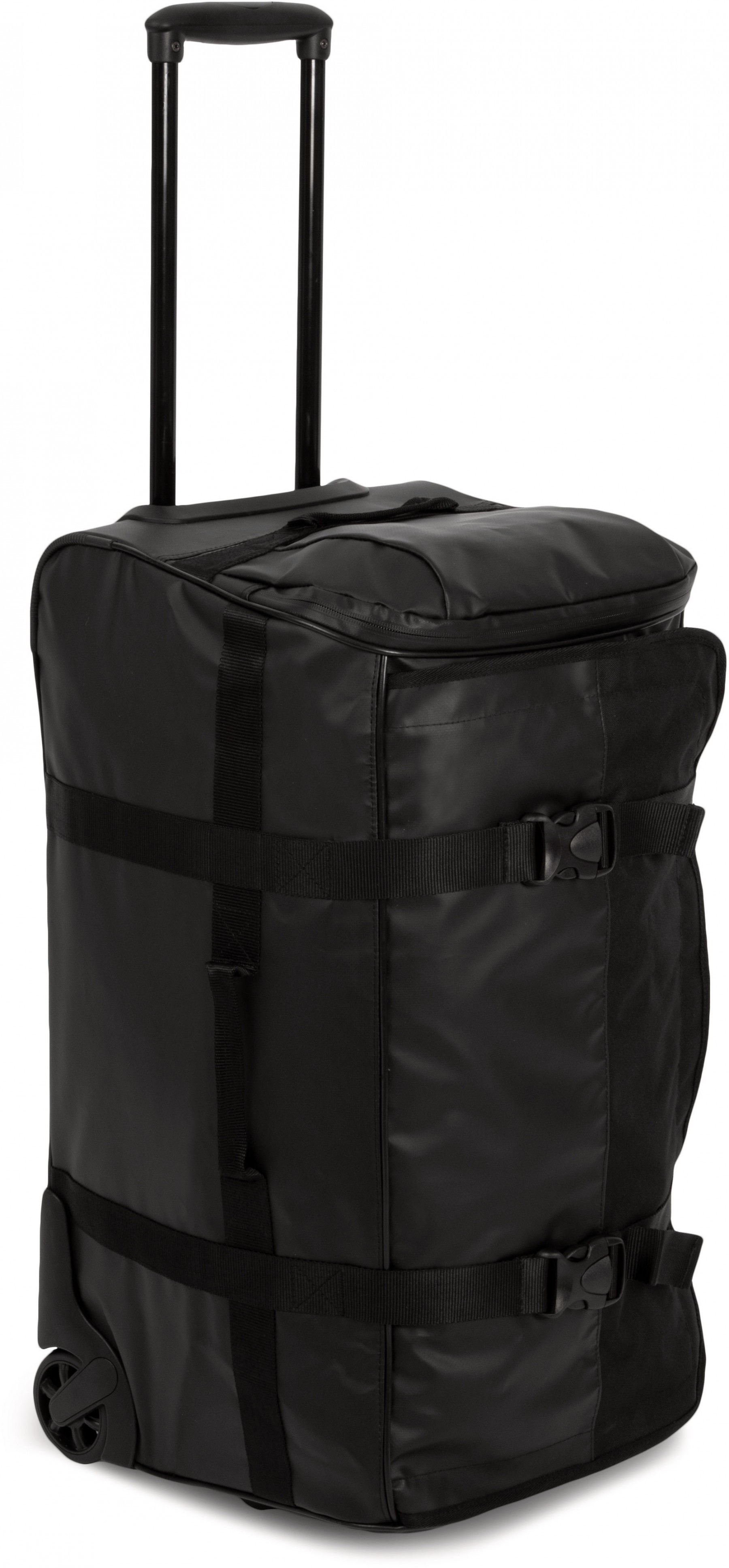 100 % polyester / 100% PVC. Sac trolley format médium en chlorure de polyvinyle et polyester. Il est entièrement conçu en matériaux imperméables avec une fermeture glissière étanche.Pratique, il est composé d'1 poche range-chaussures sur le côté, d'1 poche frontale zippée, d'1 grande poche interne en filet pour accessoires avec fermeture zippée.Pour faciliter le transport, il est équipé de 2 sangles de compression, de poignées sur les 2 côtés.Robuste, ce sac a été pensé avec des renforts de protection sur les angles, u1 barre de protection sur le dos du trolley, 1 fond semi-rigide avec 1 poignée en plastique qui fait office de pied.