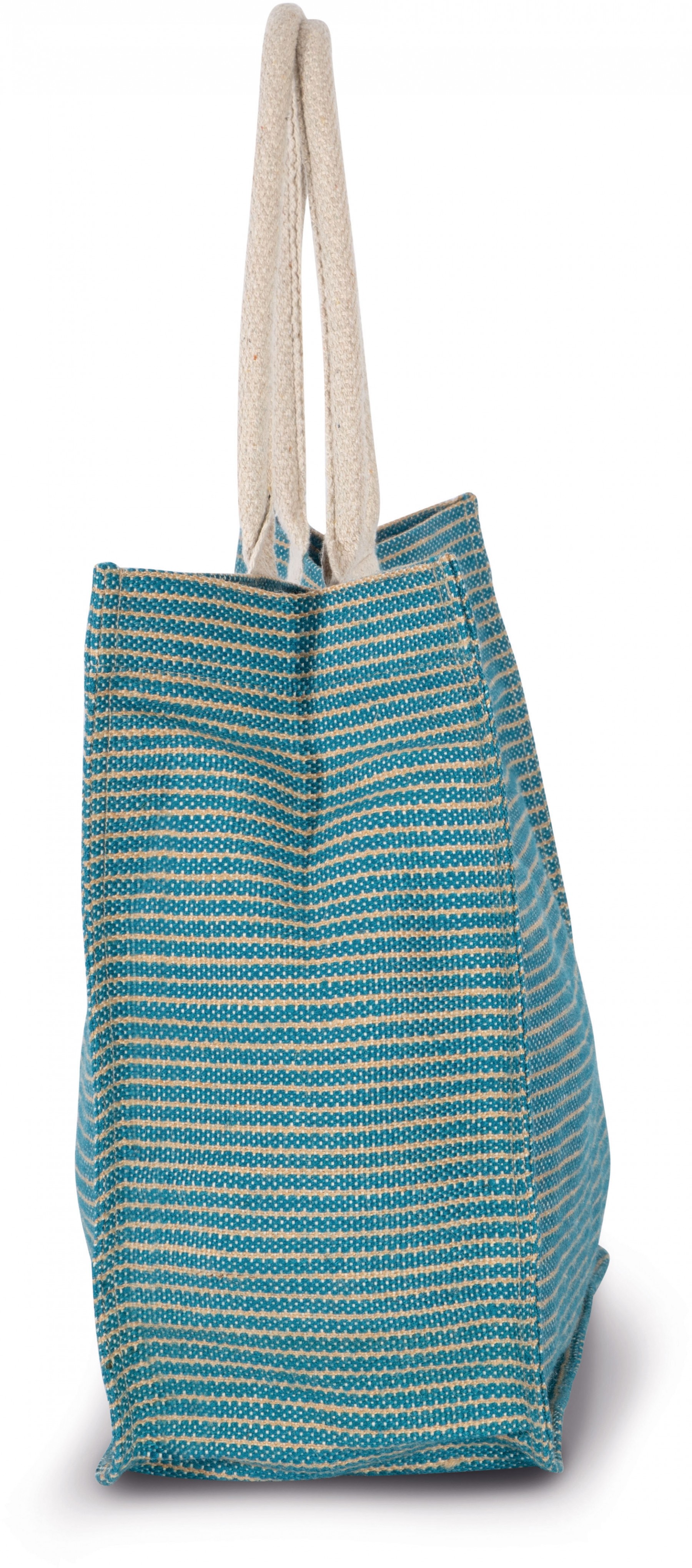 70% jute / 30% coton. Sac shopping en juco, en fil de coton et jute tissé-teint. Anses en coton naturel. Poche interne. Fermeture avec bouton magnétique.