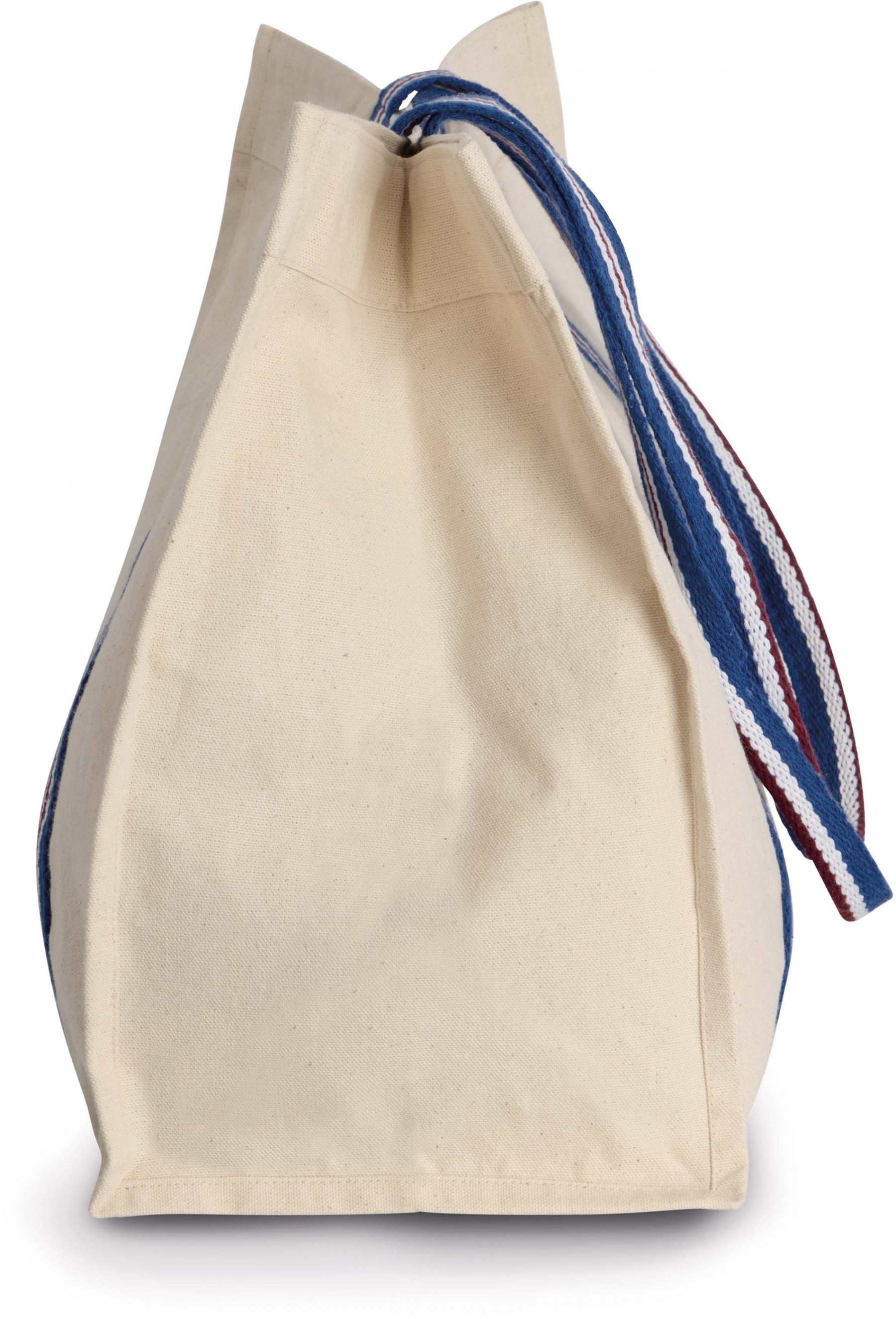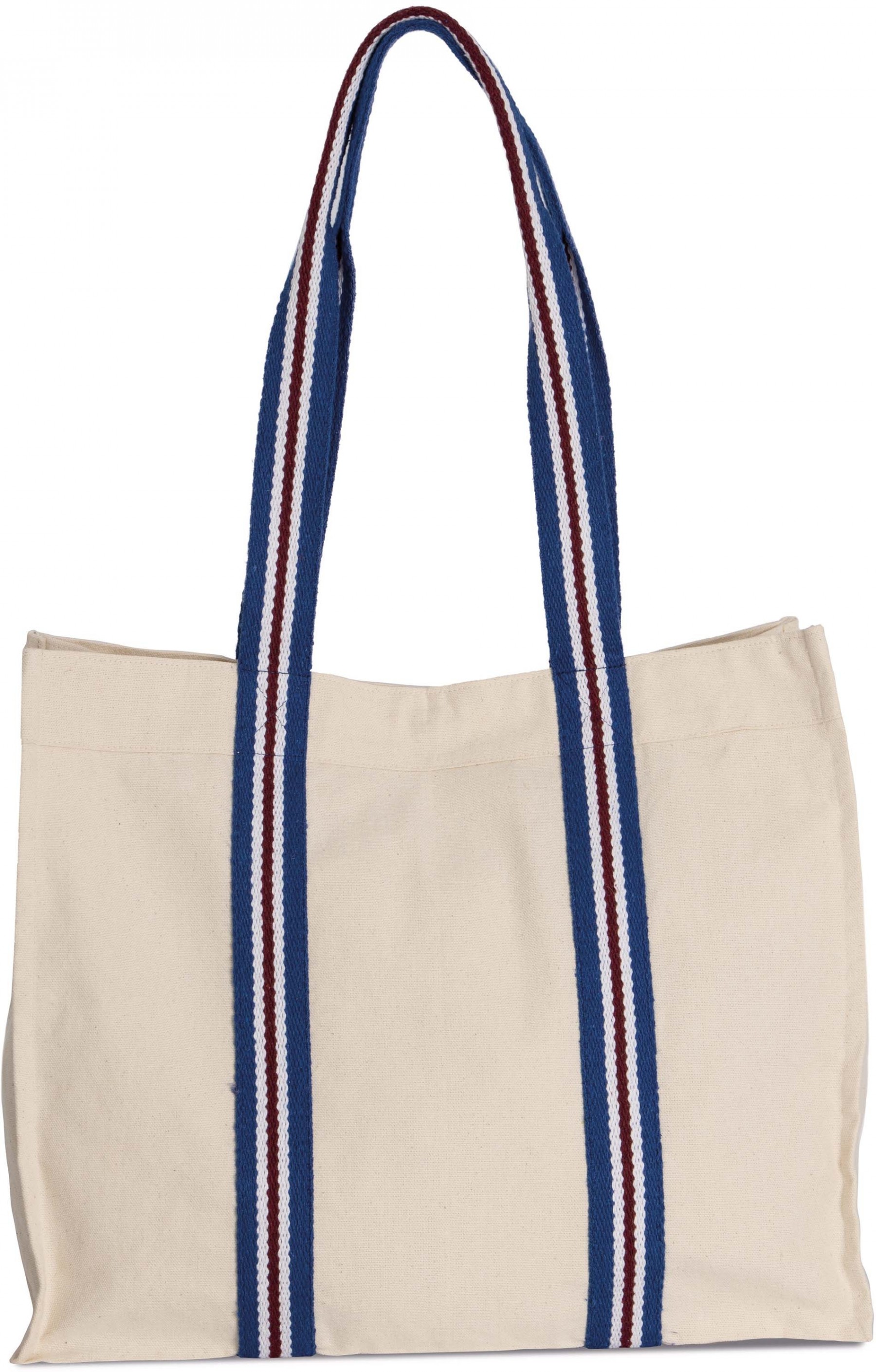 100 % coton. Sac shopping avec soufflet 100% coton. Conçu à partir de 100% de coton biologique. Le certificat OCS100 (Organic Content Standard) est délivré par Ecocert Greenlife.Anses avec rayures contrastées. Poche interne. Fermeture par un bouton magnétique.