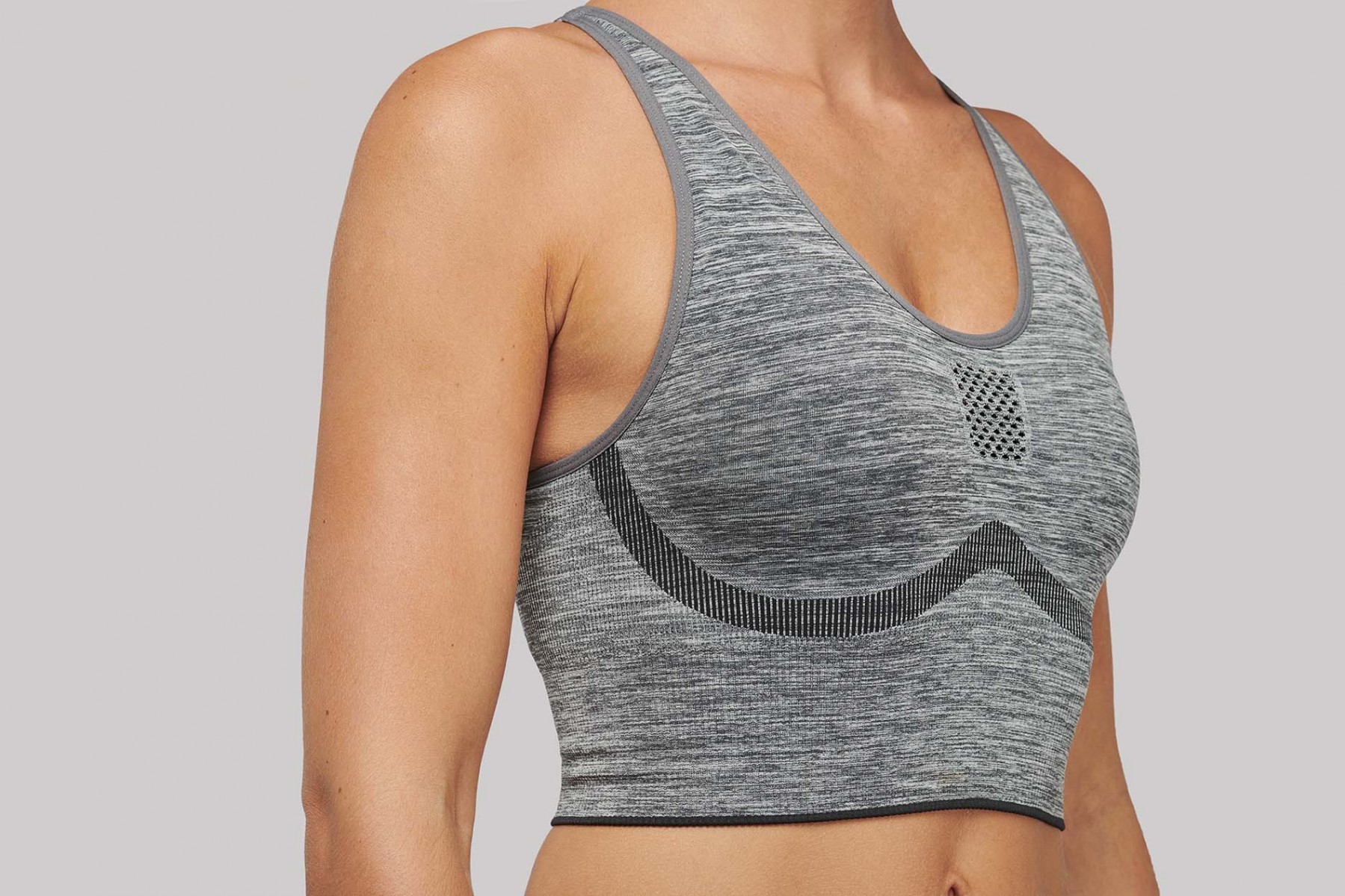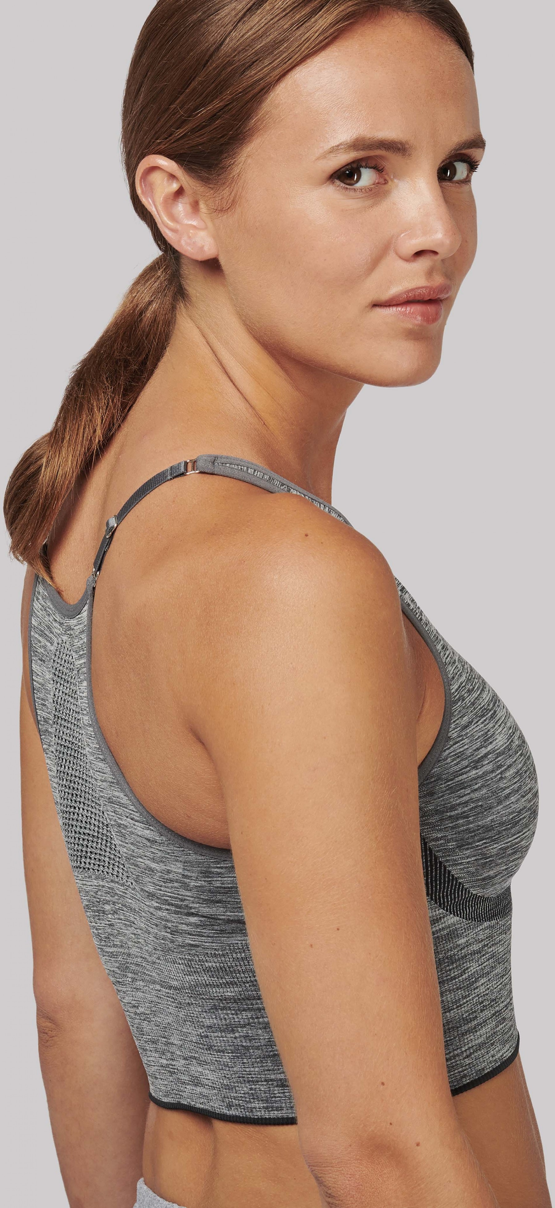 48% polyamide / 41% polyester / 11% élasthanne. Maille doublée avec un tricotage ergonomique pour un excellent maintien et confort grâce à sa conception sans couture. Bretelles réglables et coques préformées amovibles. Coupe étudiée pour une pratique multisports.