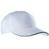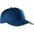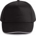 100% coton sergé. Casquette 5 panneaux avec sandwich contrasté, bande de transpiration en coton. Fermeture réglable avec bande auto-agrippante.