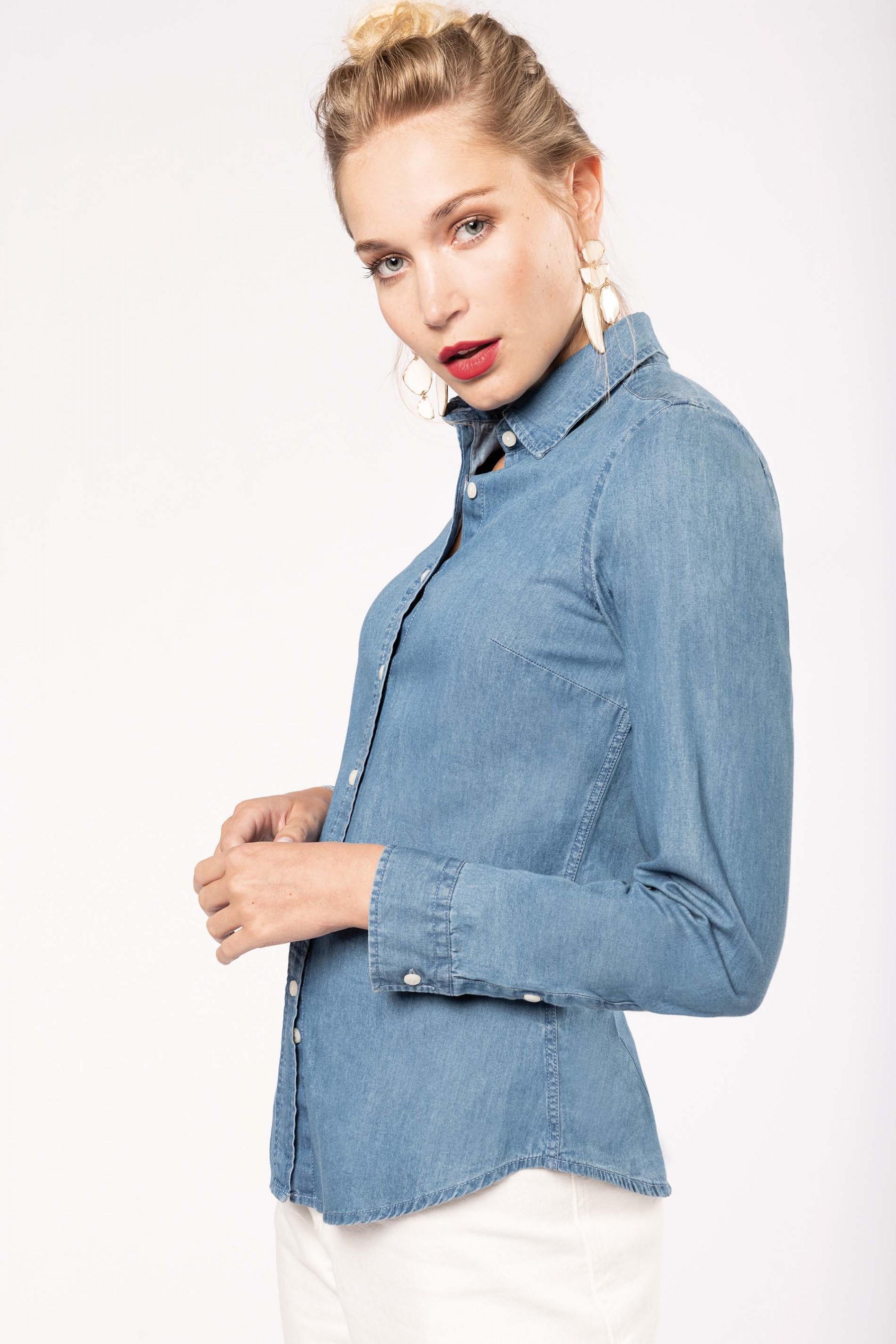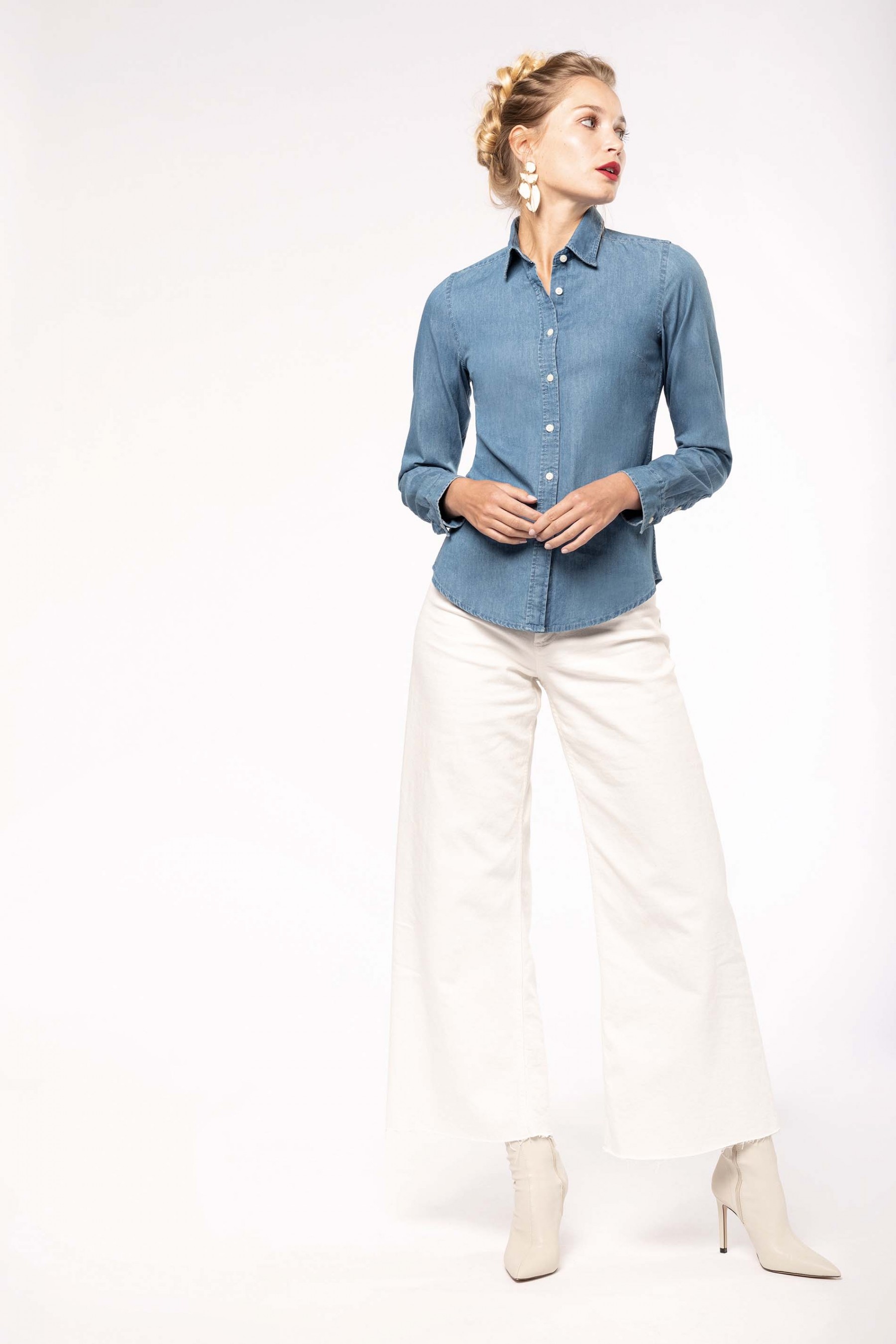 100% coton. Toile légère effet denim. Matière souple et confortable. Coupe cintrée mode. Col avec bande fantaisie intérieure. Boutons contrastés. Poignets réglables. Ce produit a subi un traitement spécial et présente un aspect volontairement vieilli. Ce procédé de fabrication implique des variations de couleurs d'un produit à l'autre et rend chaque pièce unique.