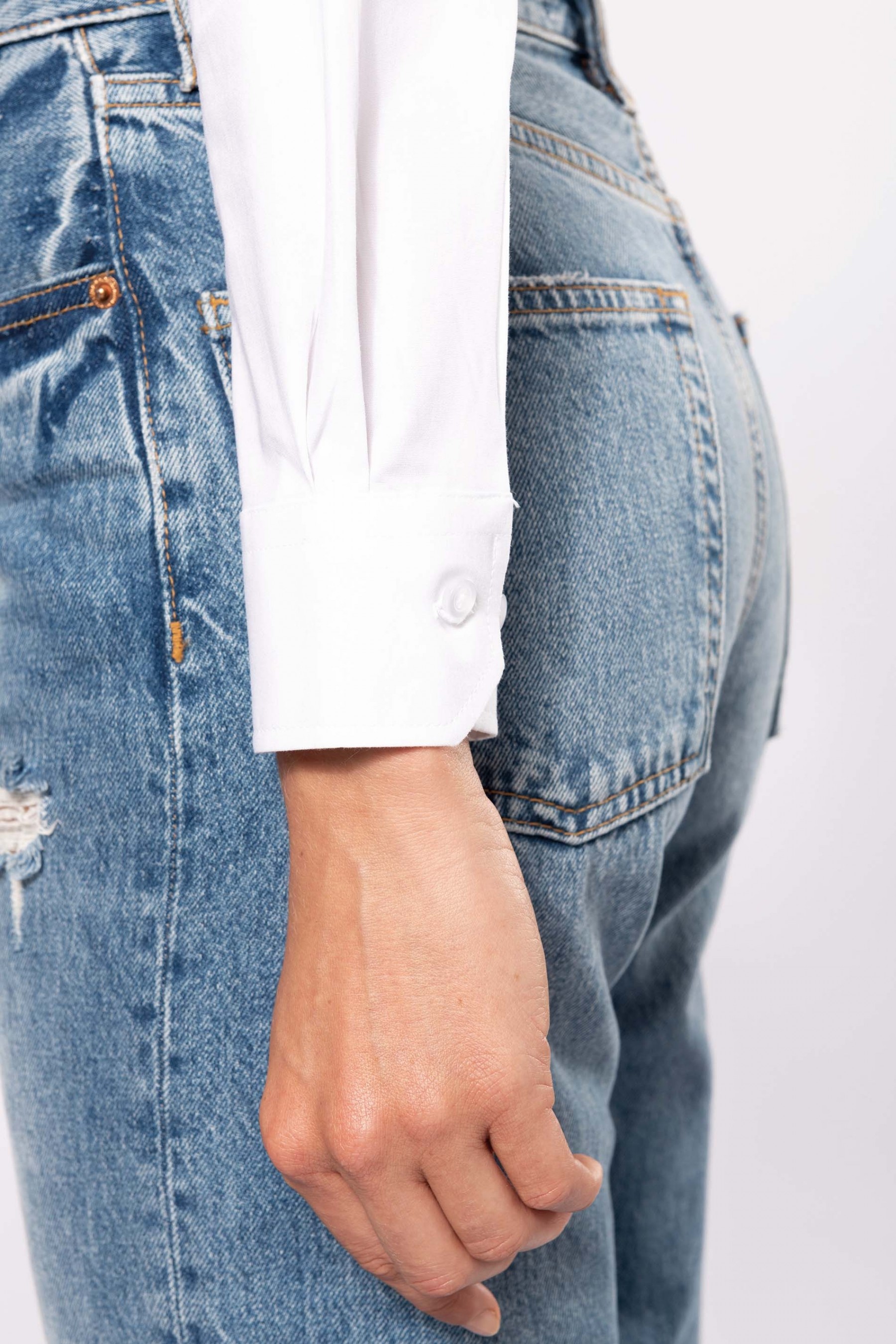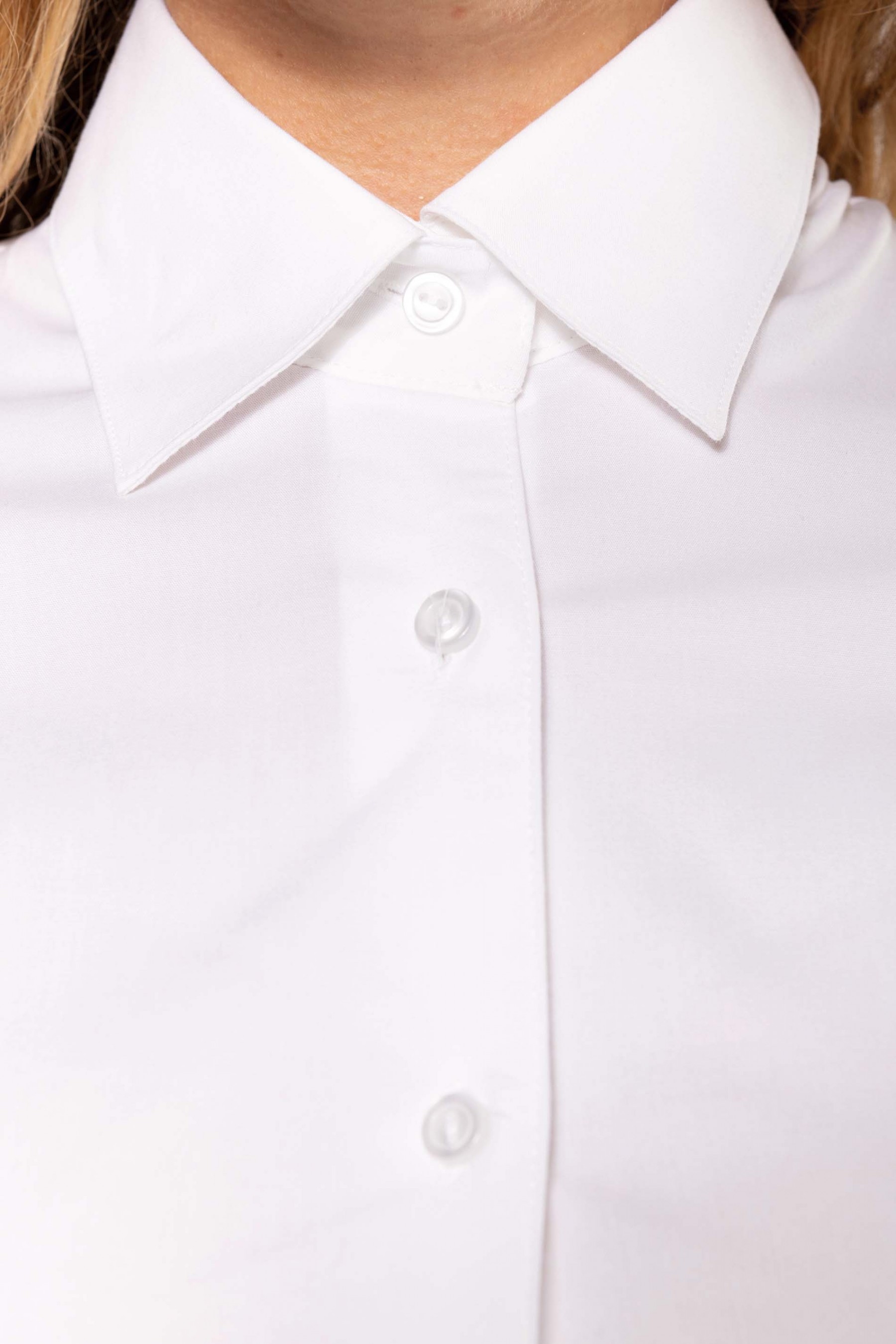 97% coton / 3% élasthanne. Aisance et ajustement idéal de par son côté stretch. Col non boutonné. Boutons ton sur ton. Pinces à la taille dos et devant. Poignet réglable à angles abattus avec patte de manche indéchirable. 1 bouton de rappel. Bas arrondi.