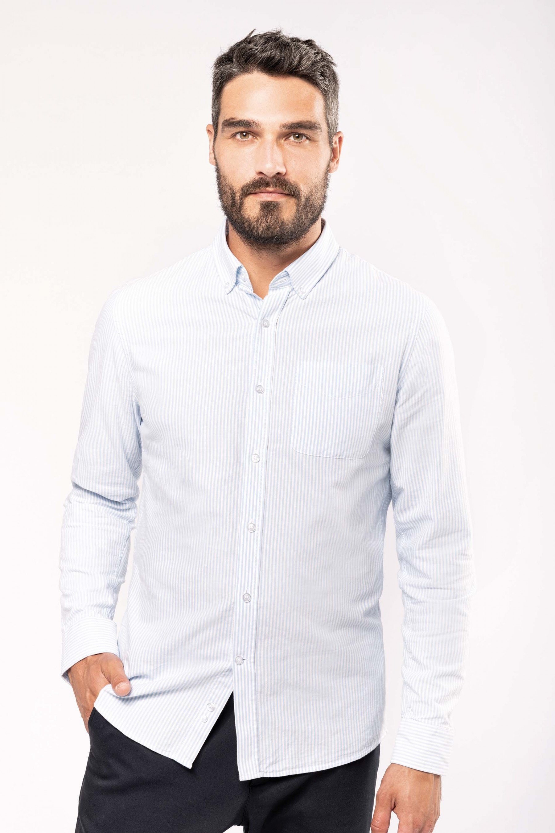 100% coton. Coupe ajustée. Pointe de col boutonnée. Intérieur col et bas de manches avec liseré contrasté. Boutons ton sur ton. Poche poitrine côté gauche à angles arrondis. Empiècement dos double. Poignets réglables à angles arrondis avec patte capucin boutonnée. 2 boutons de rappel. Bas arrondi.