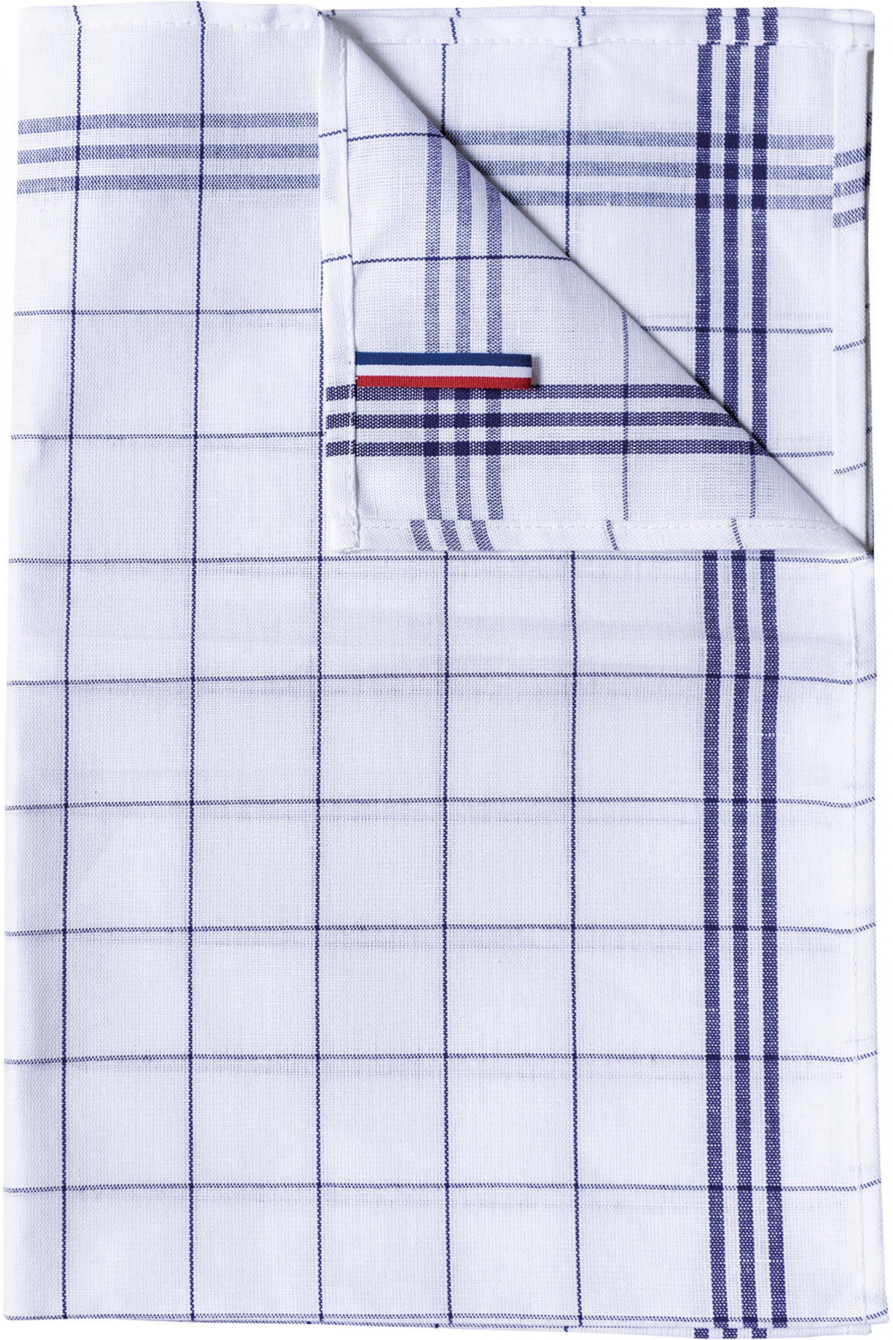 50% lin / 50% coton. 3 rayures de chaque côté. Étiquette tricolore reprenant le drapeau français servant de lien d'accrochage. Étiquette auto-collante détachable : "Origine France garantie - Produit en Bretagne". Recommandation pour un essuyage parfait : laissez tremper 12 h dans l'eau froide, puis lavez 2 à 3 fois à température recommandée.