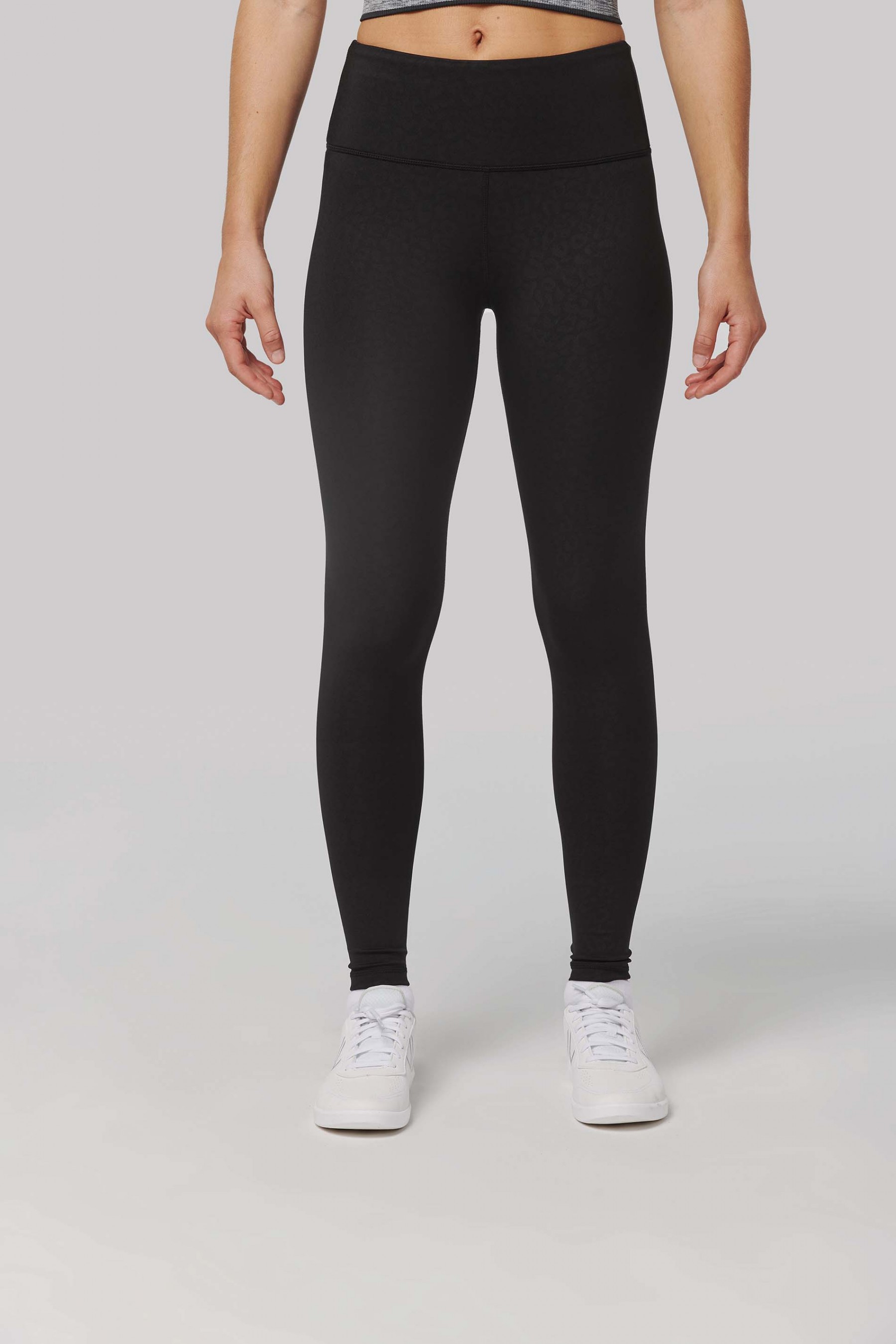 81% polyester / 19% élasthanne. Conçu à partir de 81% polyester recyclé et 19% élasthanne. Le certificat GRS (Global Recycled Standard) est délivré par Ecocert Greenlife. Tissu au toucher doux avec un motif imprimé ton sur ton qui donne de léger reflets. Coupe skinny. Large ceinture pour un confort optimal. Petite poche de rangement à l'intérieur de la ceinture devant. Surpiqûres plates ton sur ton à la ceinture, entrejambes et bas de vêtement. Etiquette de marque déchirable pour faciliter la personnalisation.