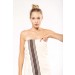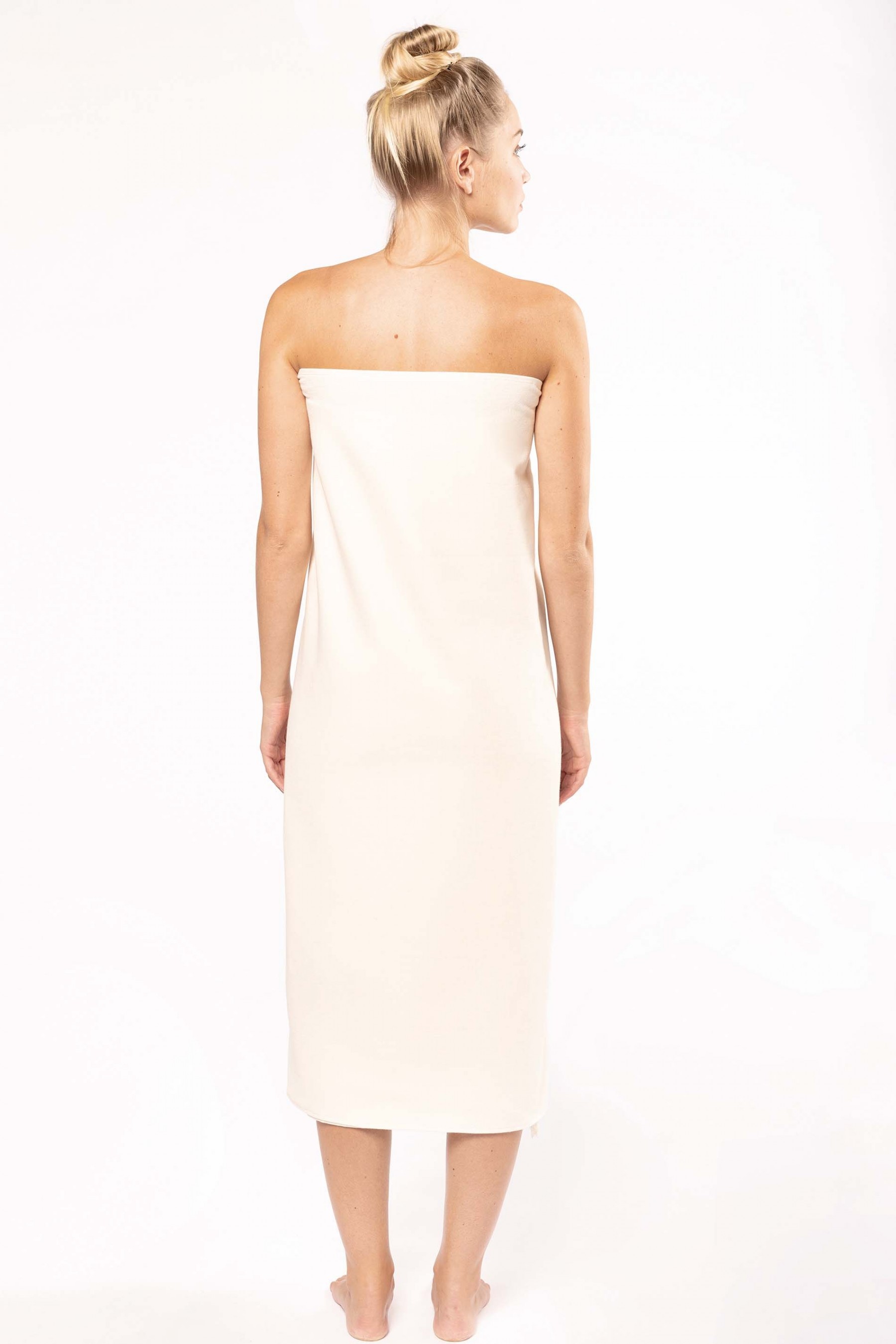 100% coton. 1 face coton tissé et 1 face éponge. Liteau contrasté avec franges.