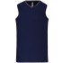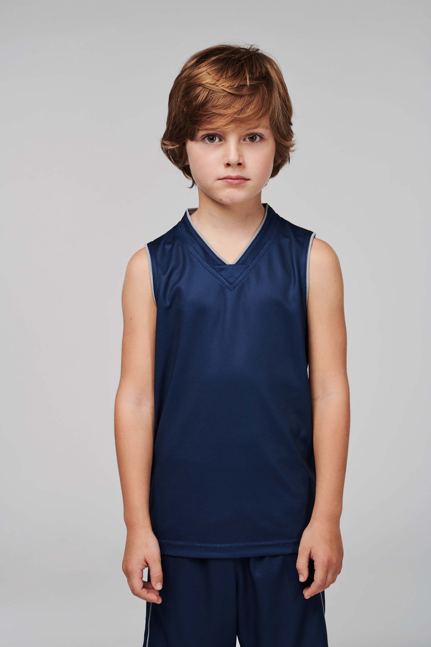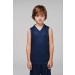 100% polyester. Encolure en V. Passepoils contrastés sur col et emmanchures. Finition double aiguille au bas du vêtement.