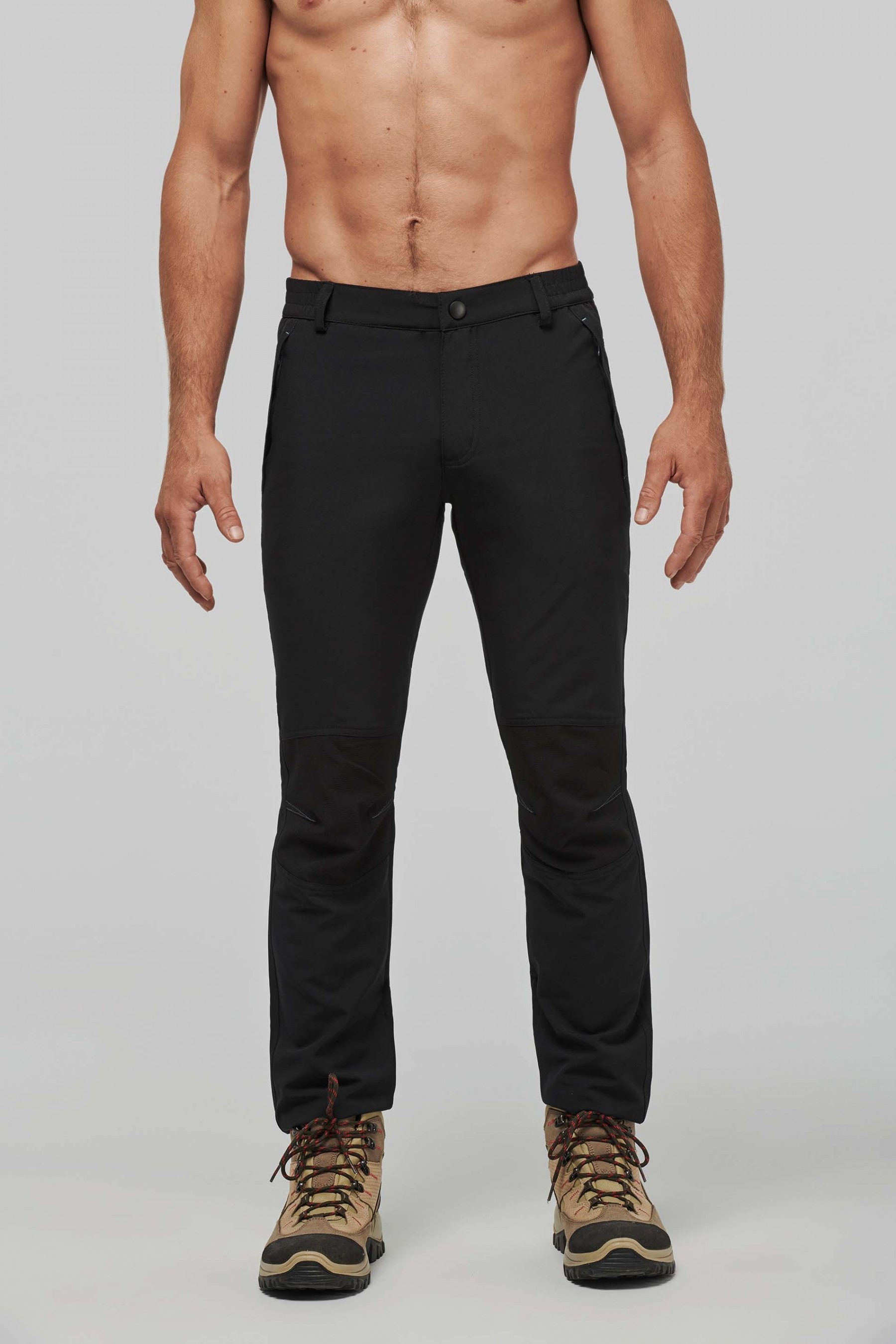 95% polyester / 5% élasthanne avec traitement déperlant et anti-statique. Pantalon ultra confortable grâce à sa matière bi-extensible. Fermeture braguette zippée contrastée avec 1 bouton crochet. 2 poches devant zippées contrastées et 1 poche passepoilée arrière zippée contrastée. Ceinture élastiquée sur côtés avec passants. Empiècements genoux 100% polyester jacquard.