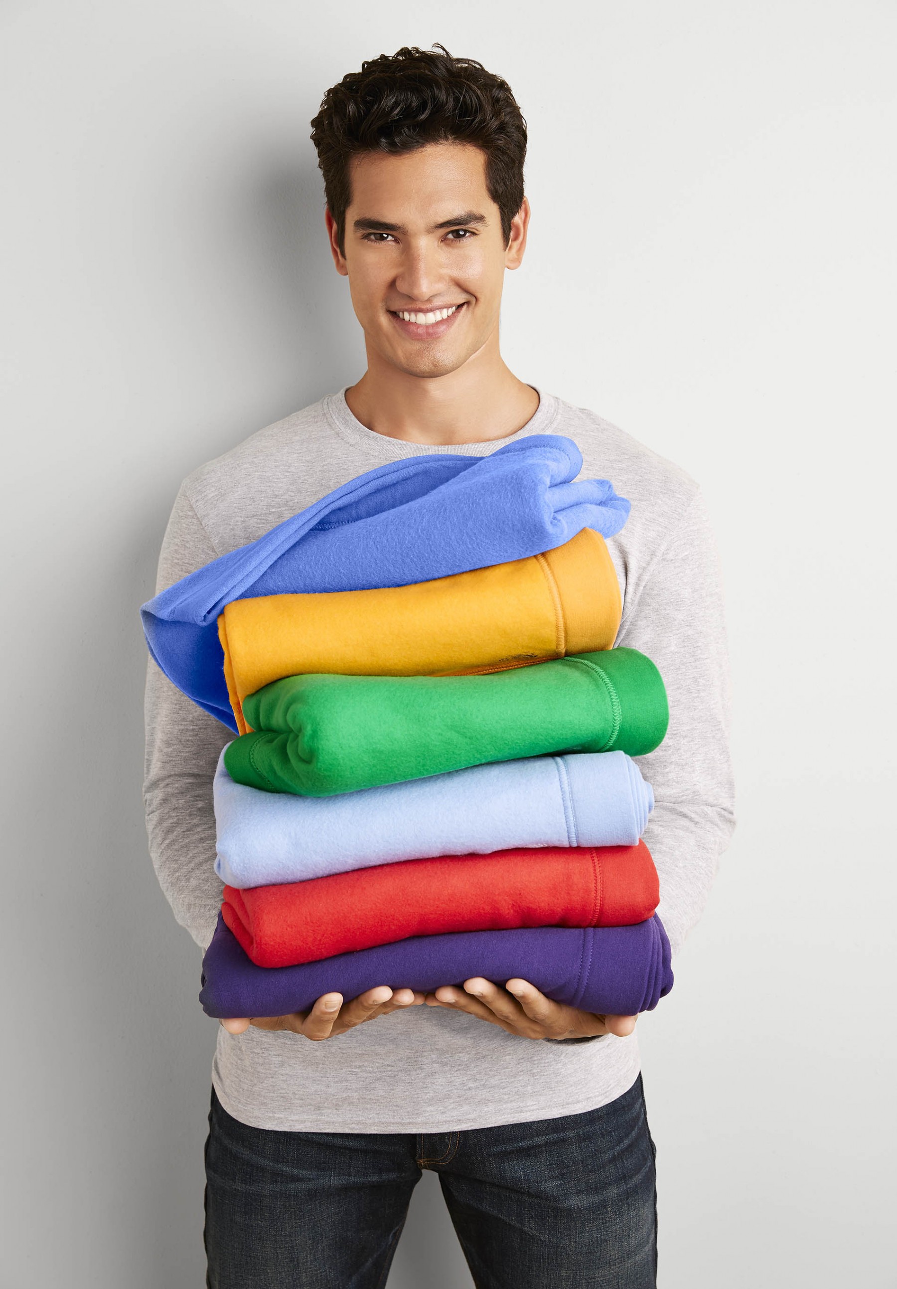50% coton / 50% polyester DryBlend®. Molleton interieur gratté pré-rétreci. Fil Air Jet - pour une surface plus douce et anti-boulochage. Finition double piqûre.