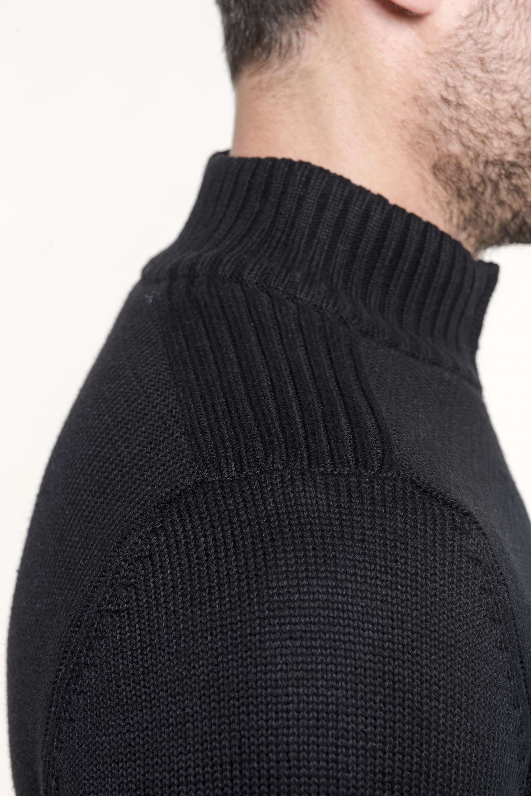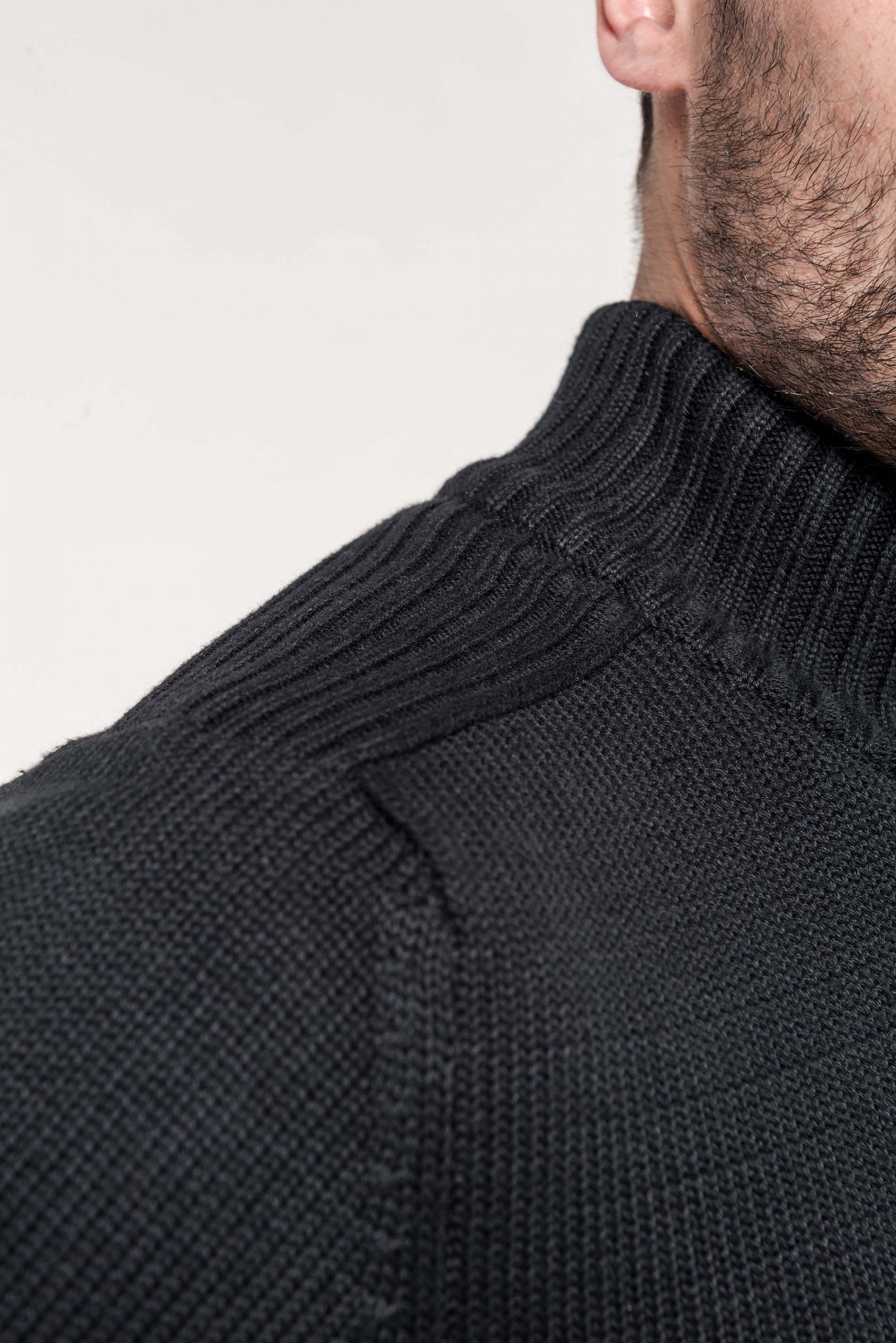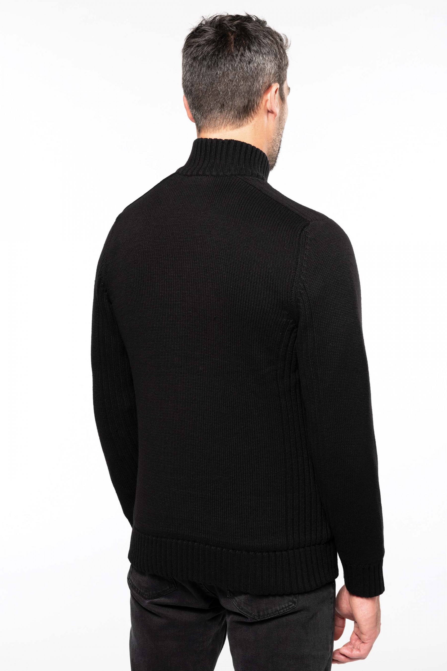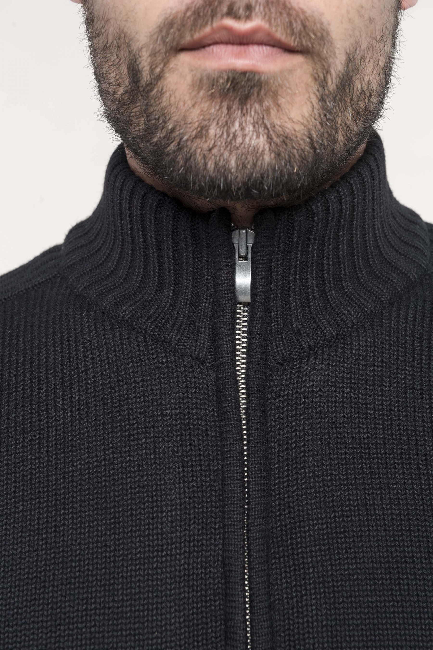 Extérieur : 50% coton / 50% acrylique. Intérieur : 100% polyester micropolaire. Doublure manches et garniture intérieure polyester. Matières chaudes et confortables. 2 poches et fermeture avant zippées. Tricotage en côtes 2 x 2 aux épaules, côtés et manches. Bord-côte 2 x 2 doublé au col, bas de manches et de vêtement. Zip invisible intérieur côté pour accès personnalisation côté ou dos.