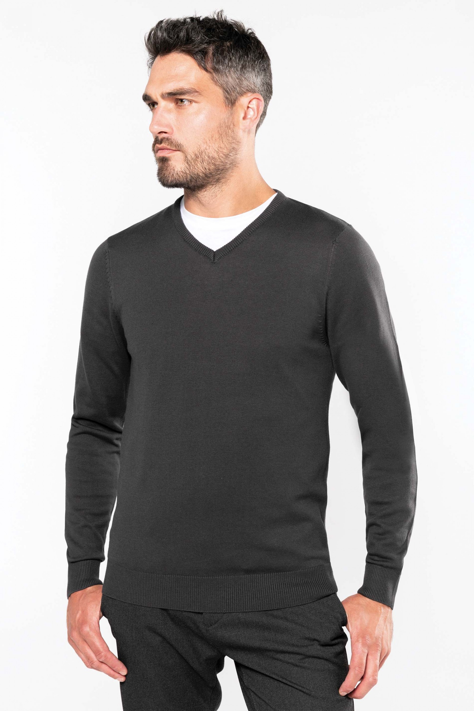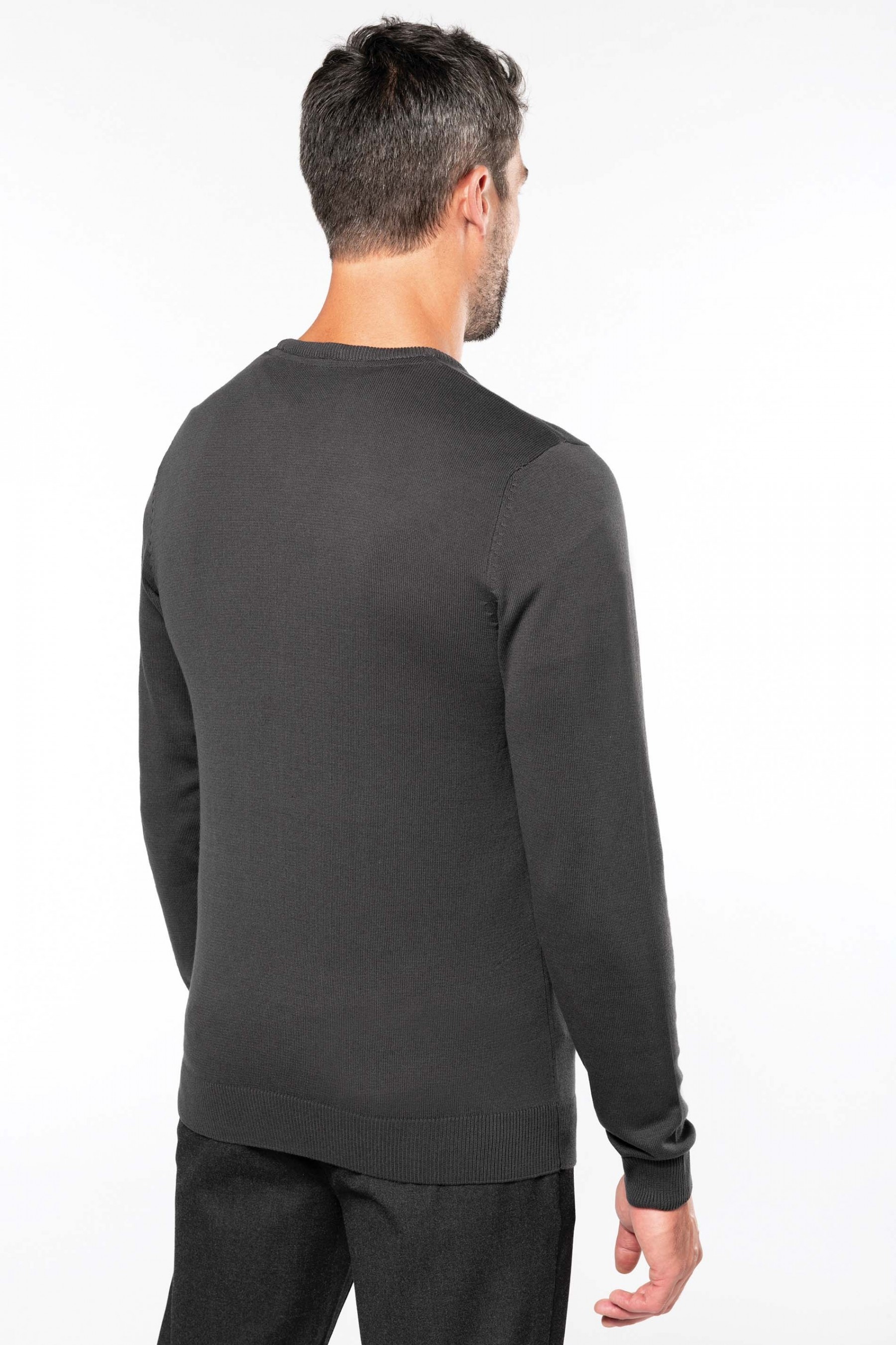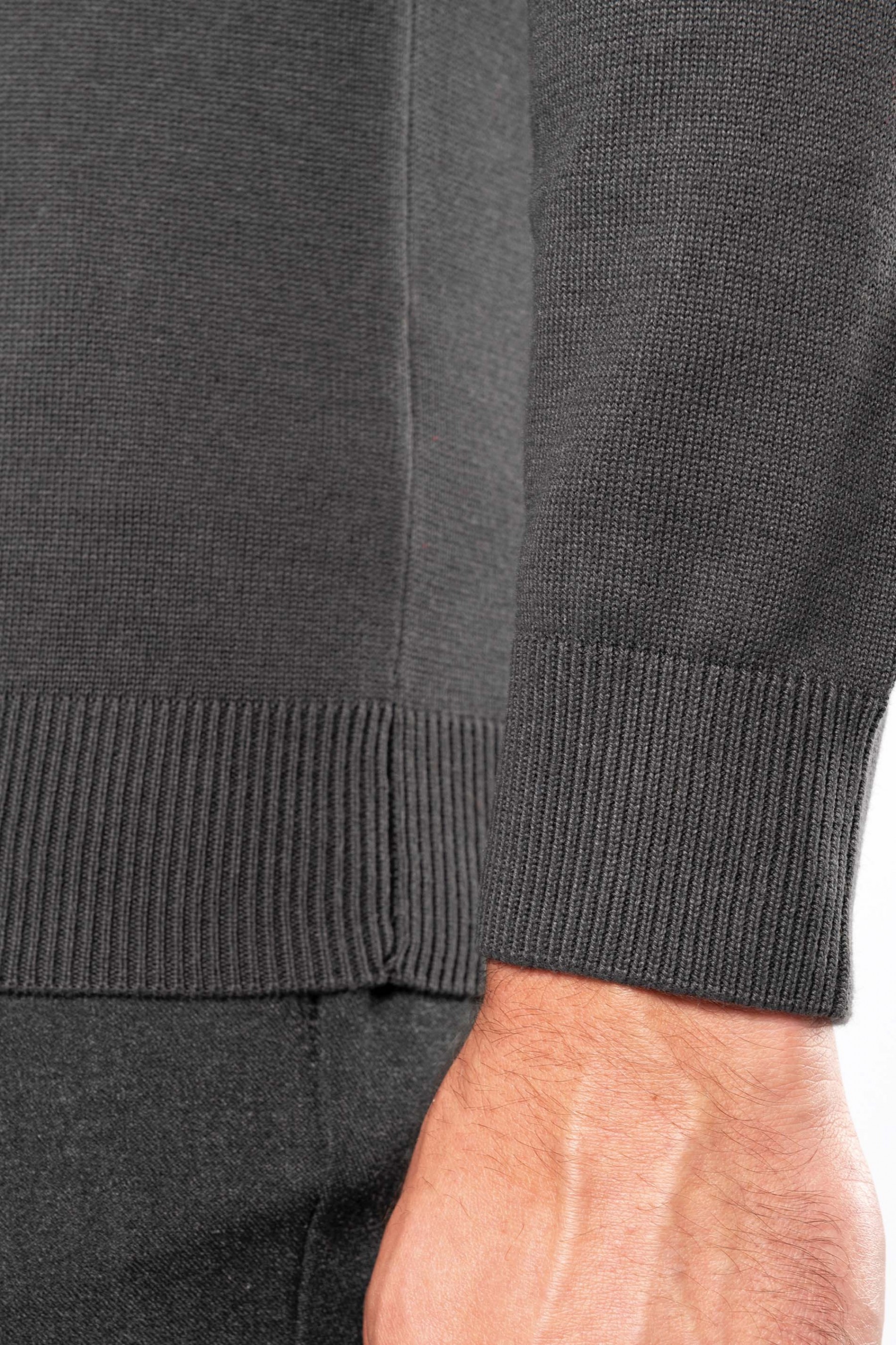 50% coton / 50% acrylique (jauge 12). Coupe ajustée. Bord-côte du col double épaisseur. Bande de propreté à l'encolure.