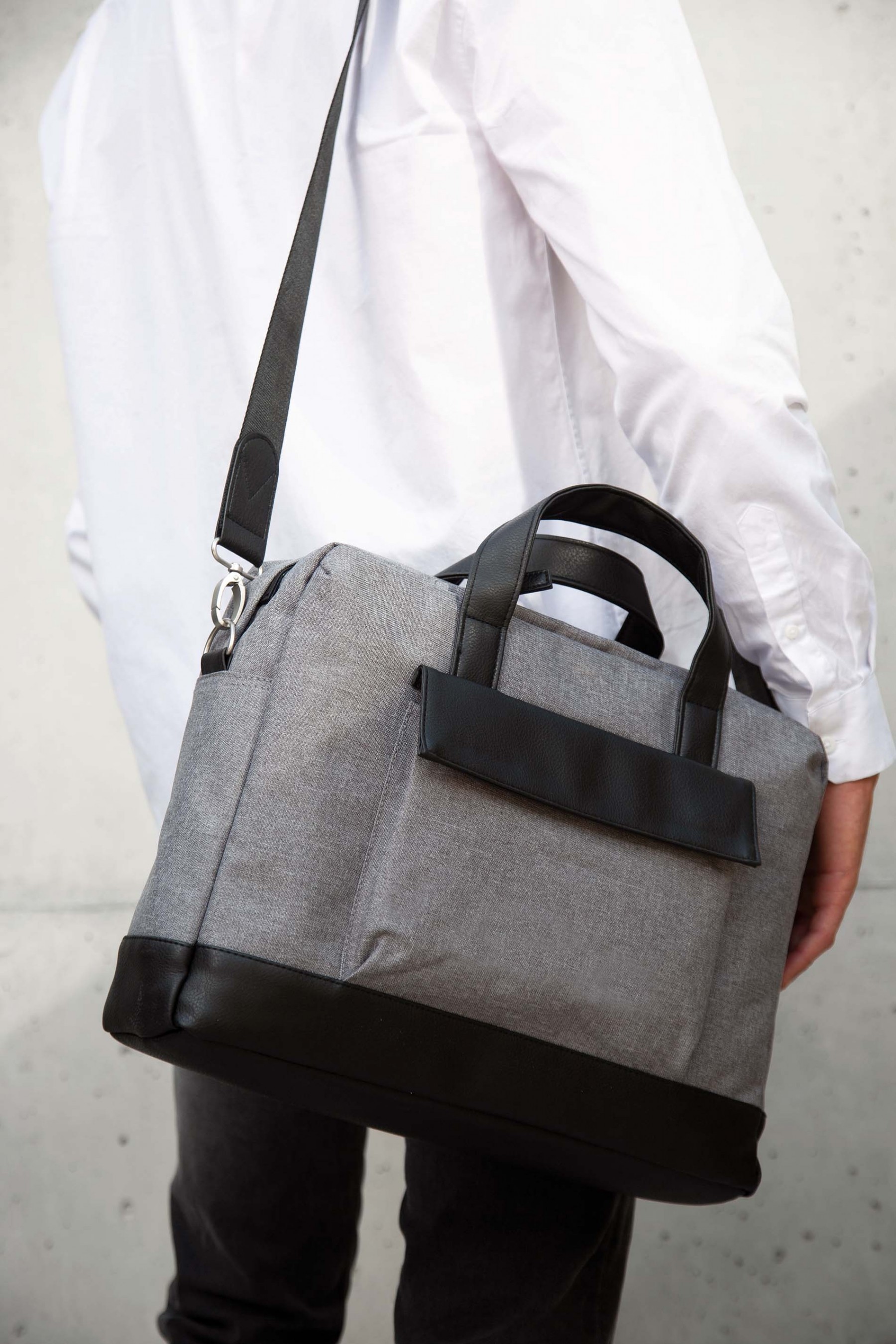 Sac porte-ordinateur en polyester 600D. Fond de sac, poignées et rabat en polyuréthane. Compartiment matelassé pour loger 1 ordinateur jusqu'à 15", et poche zippée matelassée pour insérer 1 tablette. 2 poches intérieures, 1 poche zippée sur le haut du sac pour loger téléphone portable, 1 poche devant avec rabat et boutons pressions. Passant au dos pour fixation trolley, lanière d'épaule amovible.