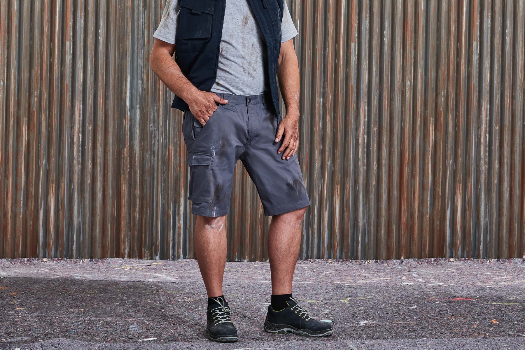 65% polyester / 35% coton sergé. Coupe moderne. Ceinture élastiquée pour plus de confort. Poche cargo latérale sur la jambe droite. 2 poches arrière avec rabats. Poche téléphone.