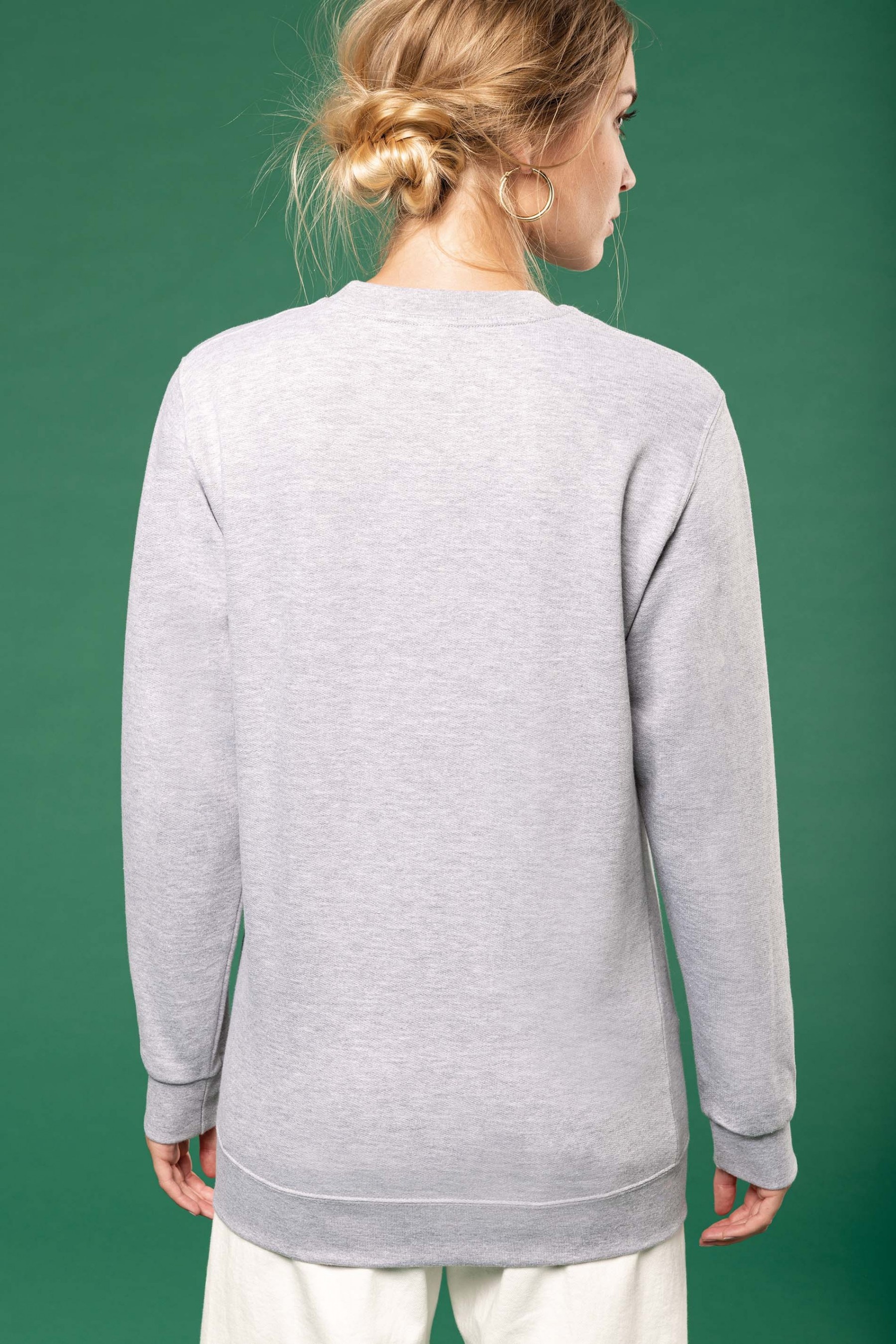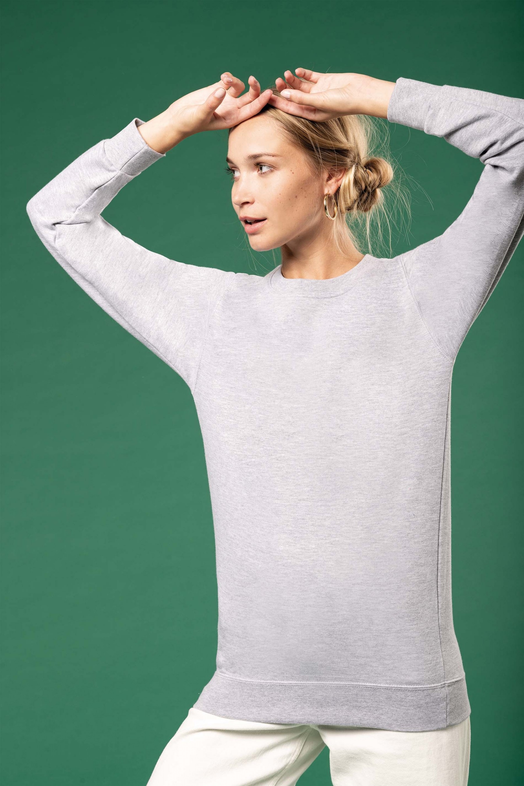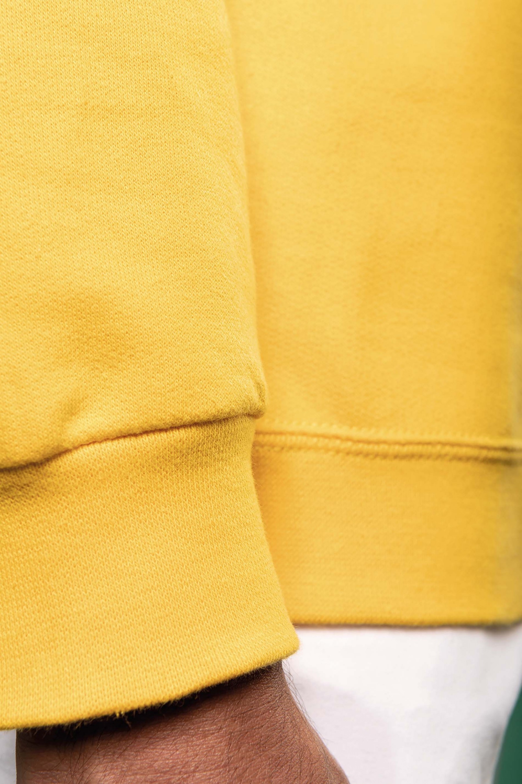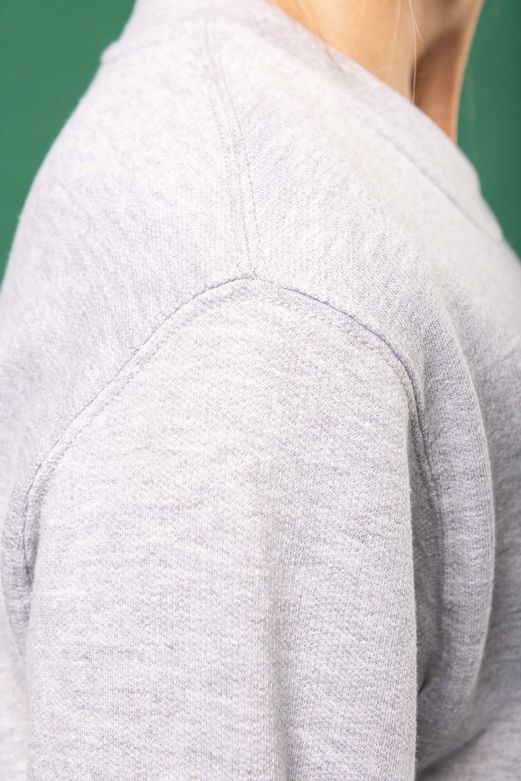 80% coton / 20% polyester. Molleton gratté. Manches montées. Finition bord-côte encolure, bas de manches et de vêtement.