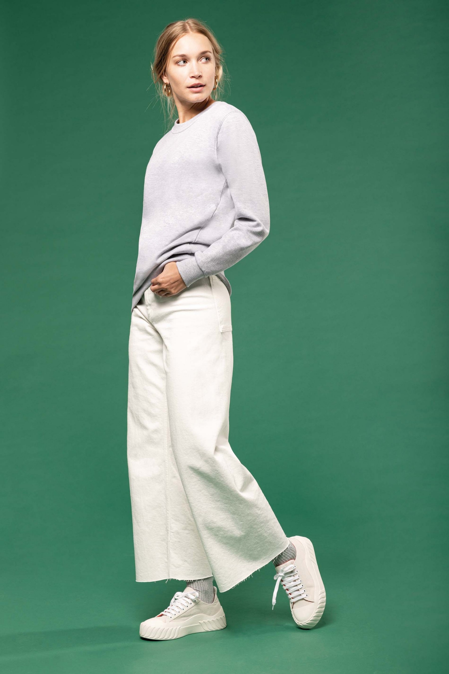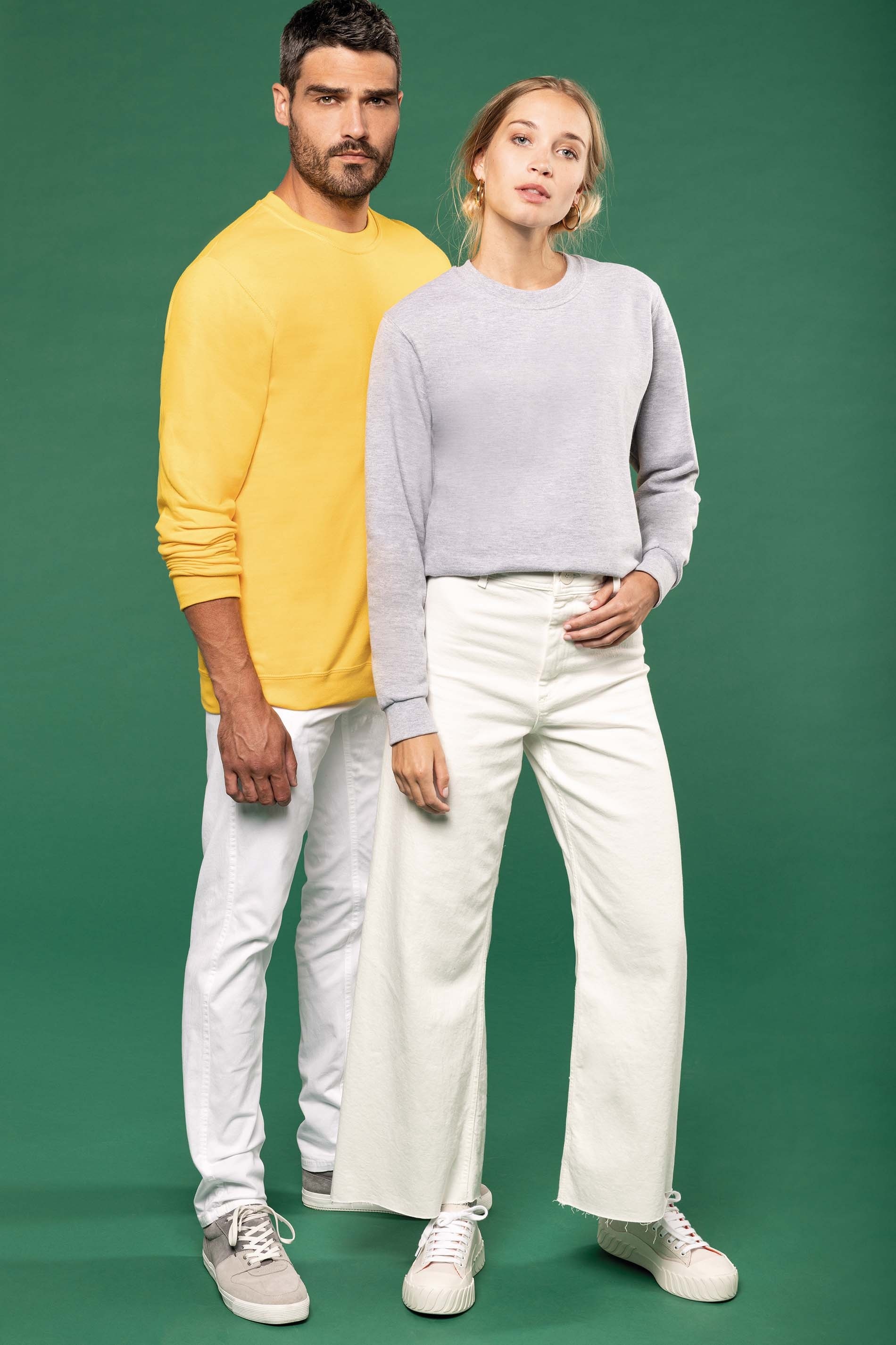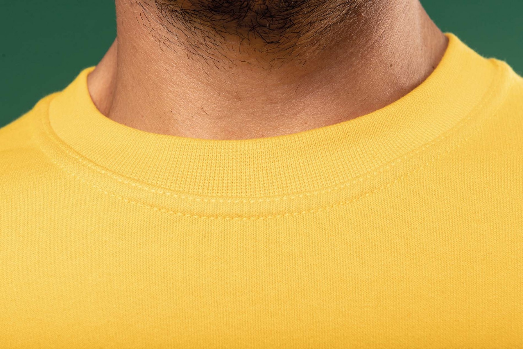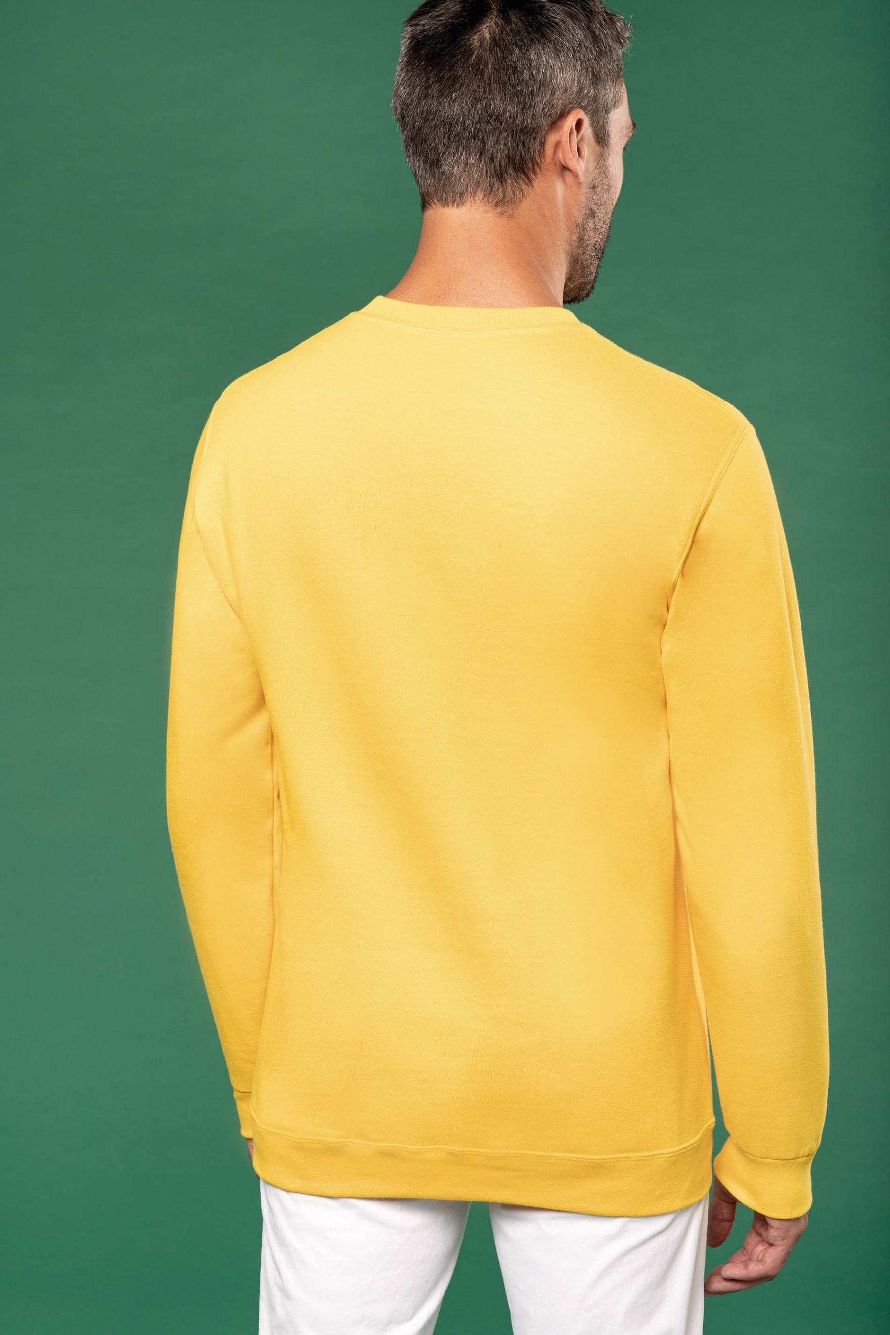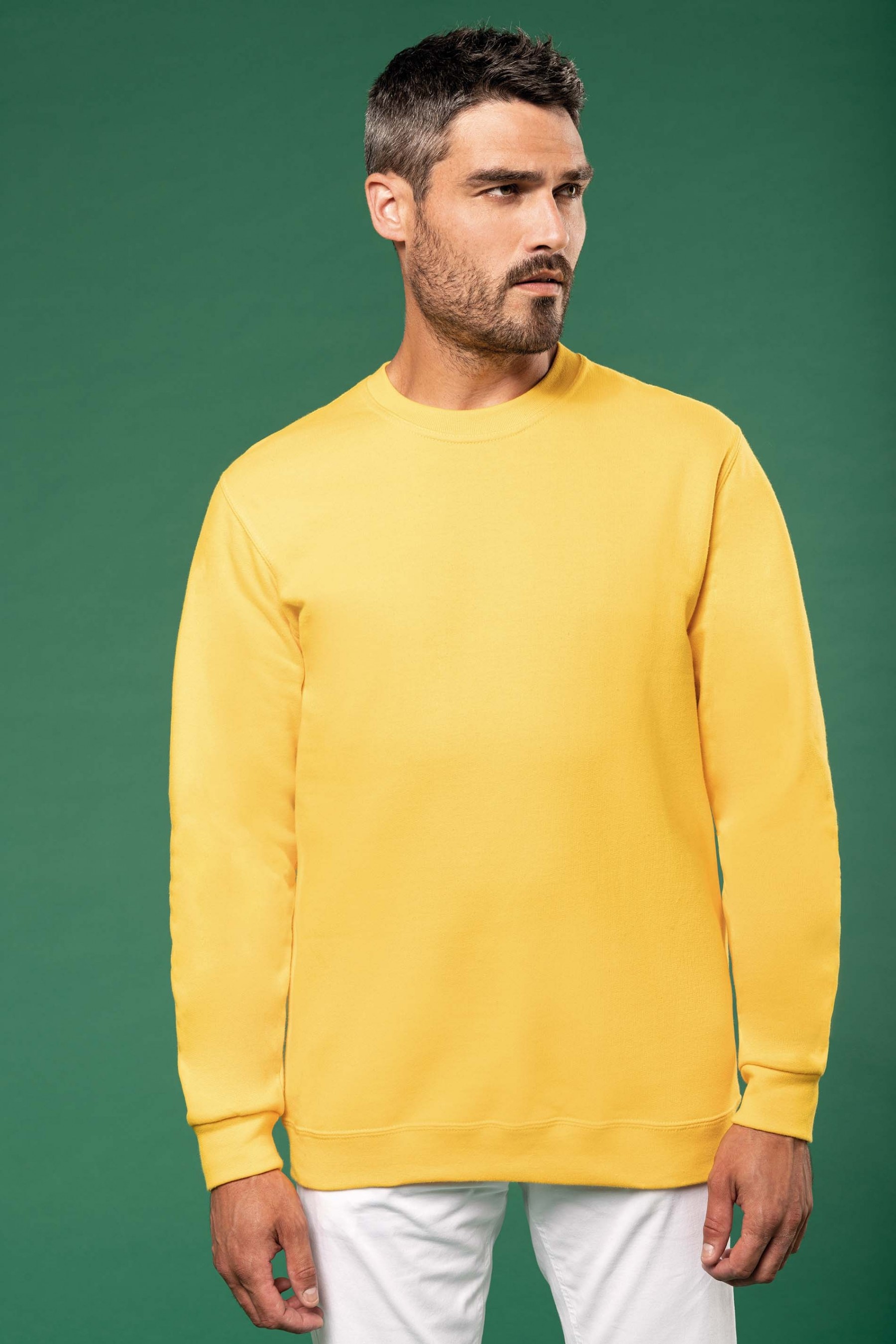 80% coton / 20% polyester. Molleton gratté. Manches montées. Finition bord-côte encolure, bas de manches et de vêtement.