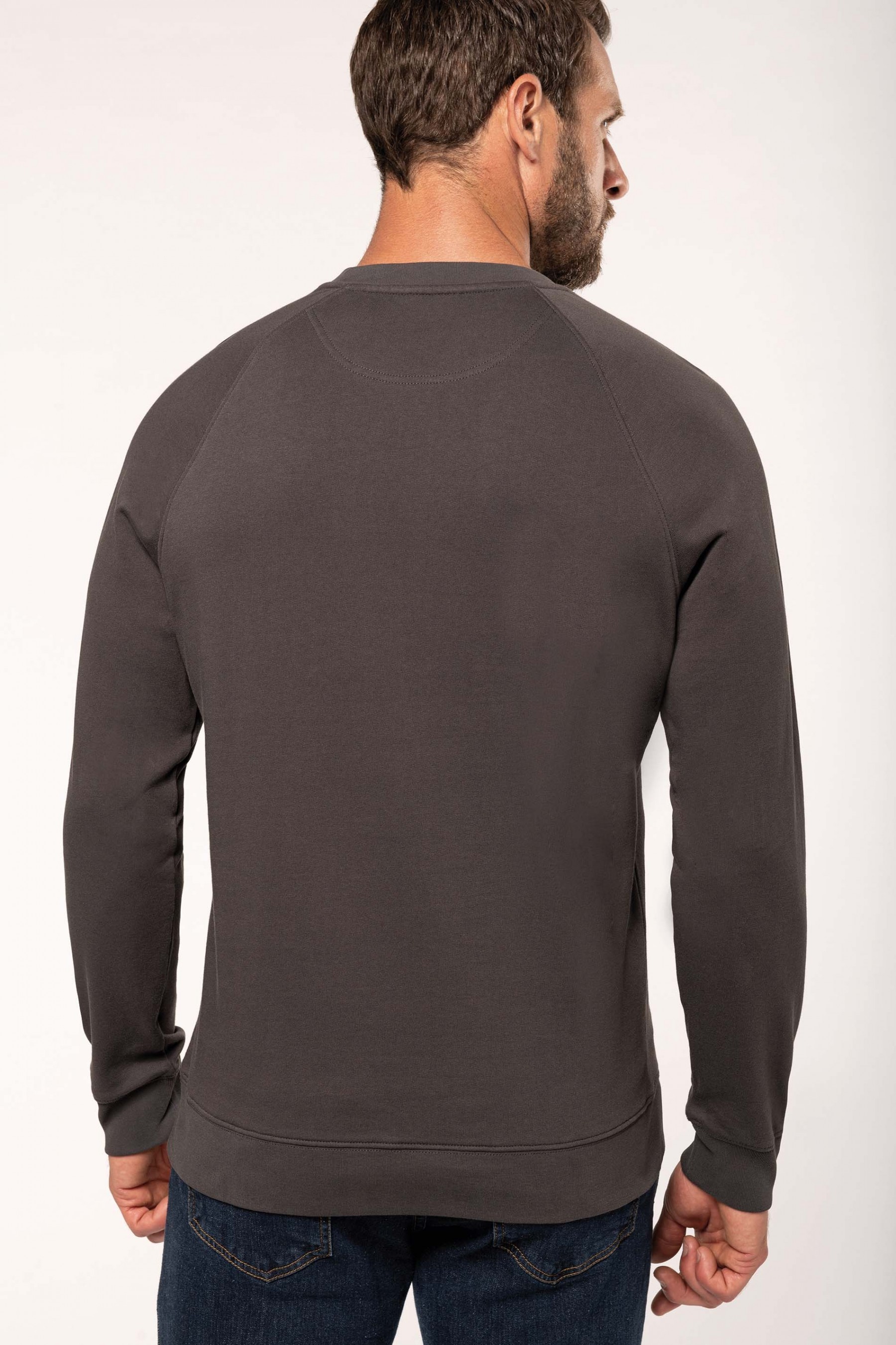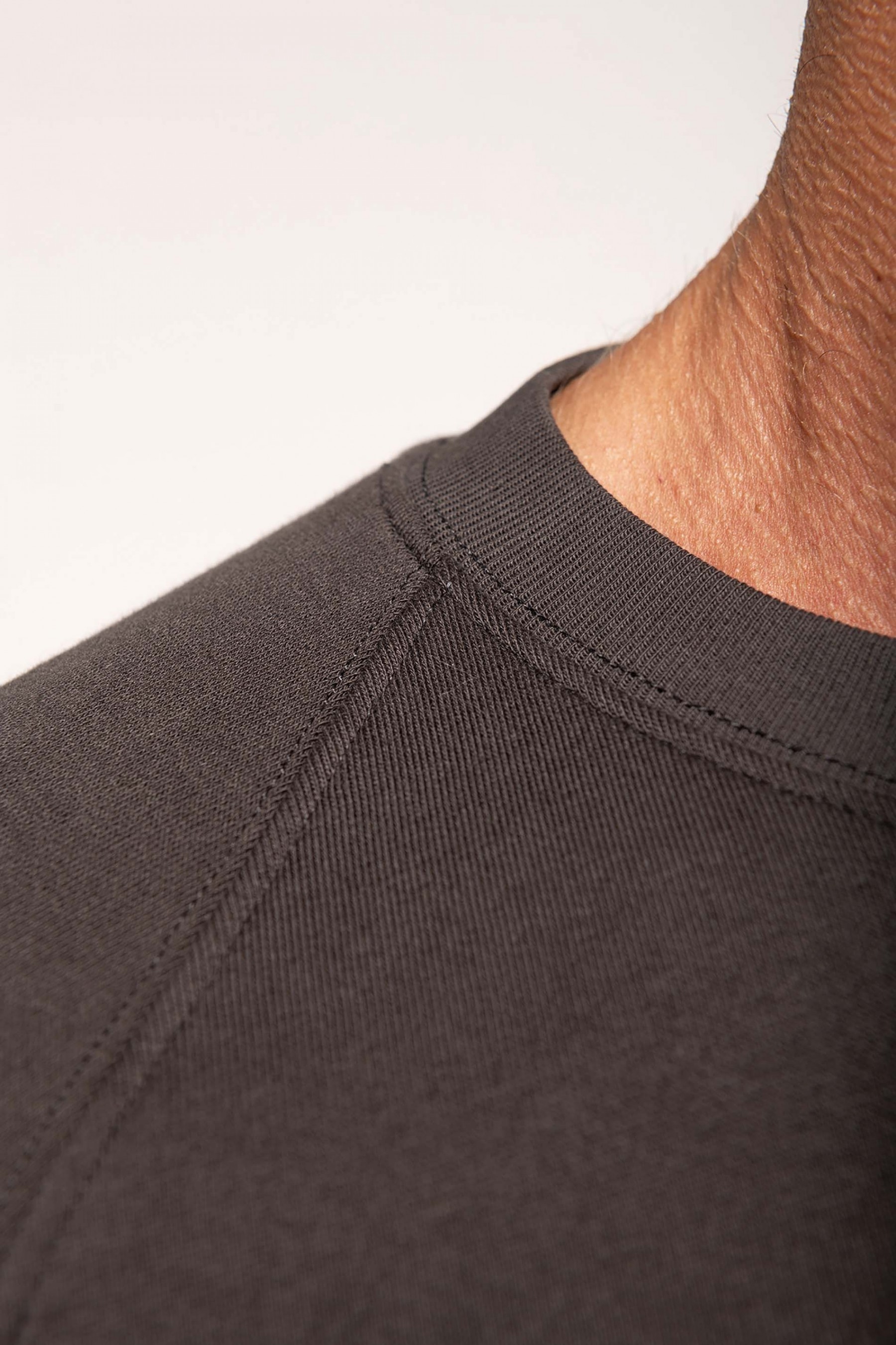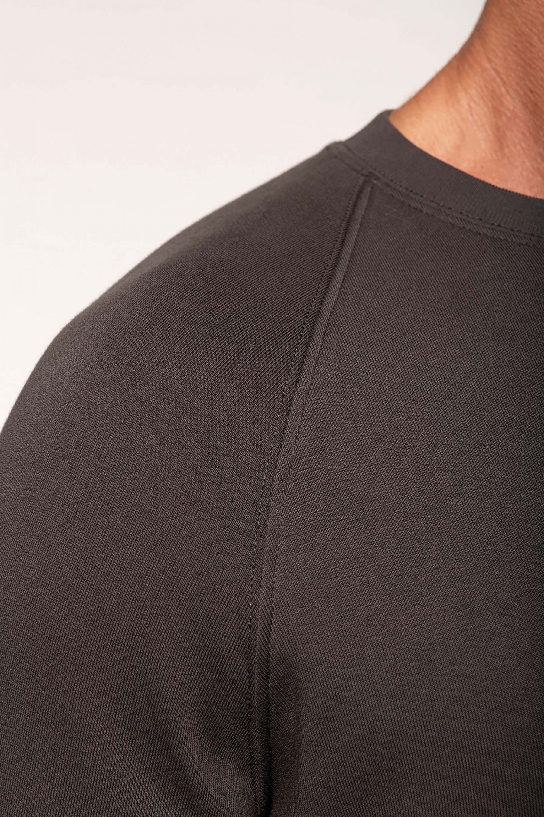 100% coton. Molleton gratté 3 fils. Lavage 60°. Coupe droite. Manches raglan. Bande de propreté intérieur col en chevron ton sur ton. Encolure ronde. Montage bord-côtes 1x1 tubulaire pour une meilleure finition au col, bas de manches et de vêtement. Empiècement demi lune dans le col. Etiquettes en coton.