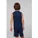 100% polyester. Ceinture élastiquée avec cordon de serrage. Passepoil contrasté sur coutures devant et dos. Finition double aiguille au bas du vêtement.