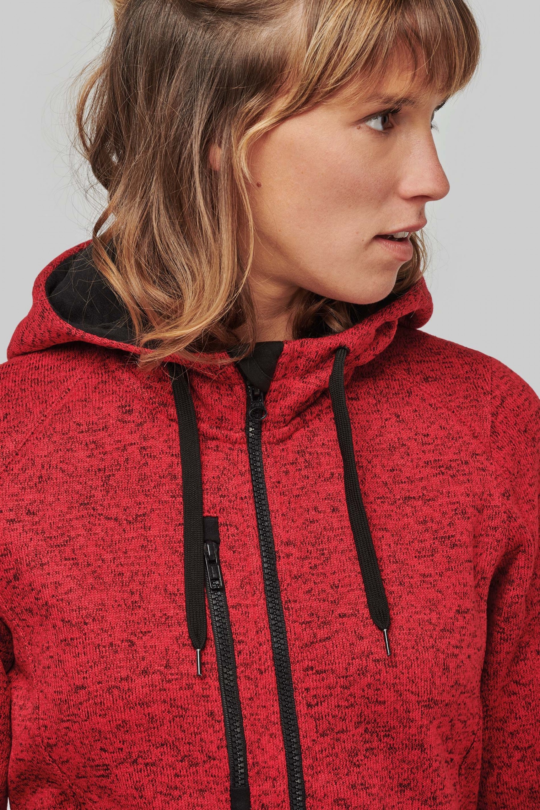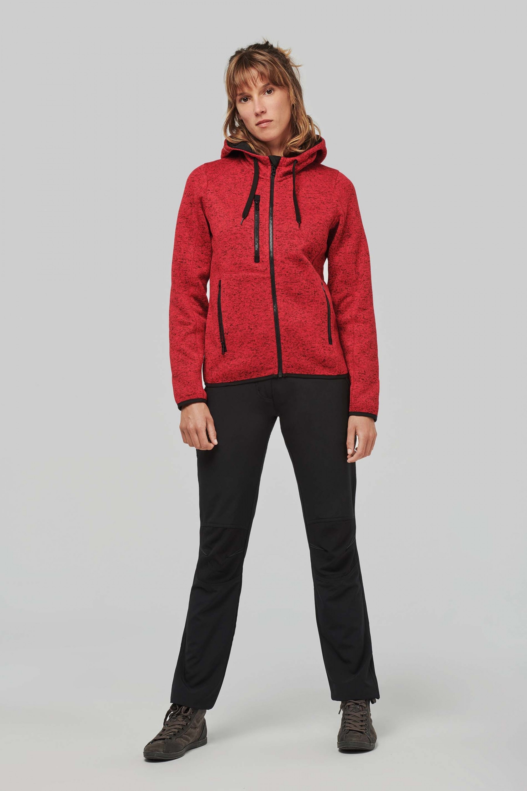 Tricot intérieur gratté 100% polyester. 2 poches devant zippées contrastées et 1 poche poitrine zippée contrastée. Capuche doublure contrastée jersey 100% coton avec cordon de serrage plat contrasté. Bas de manches et de vêtement avec finition biais contrasté élastiqué. Point de recouvrement sur les découpes.