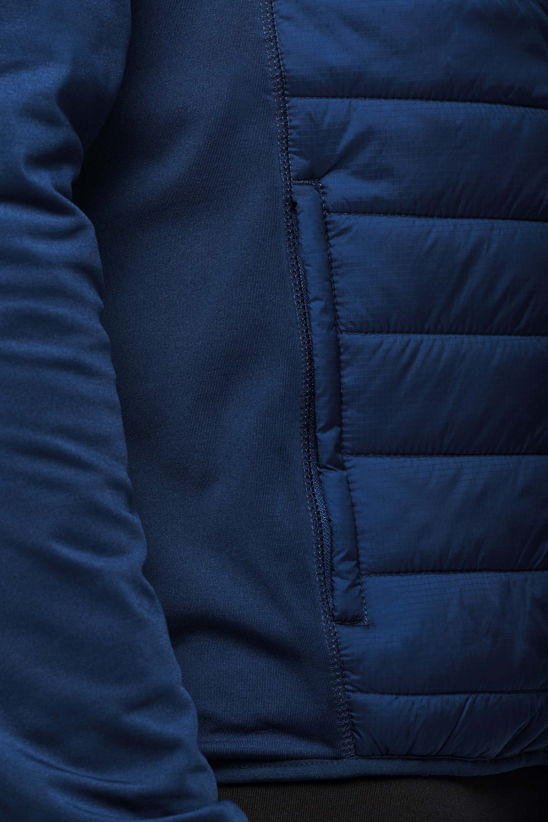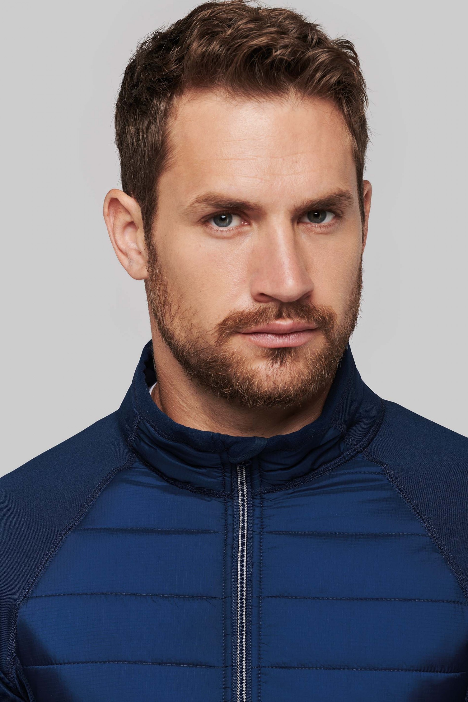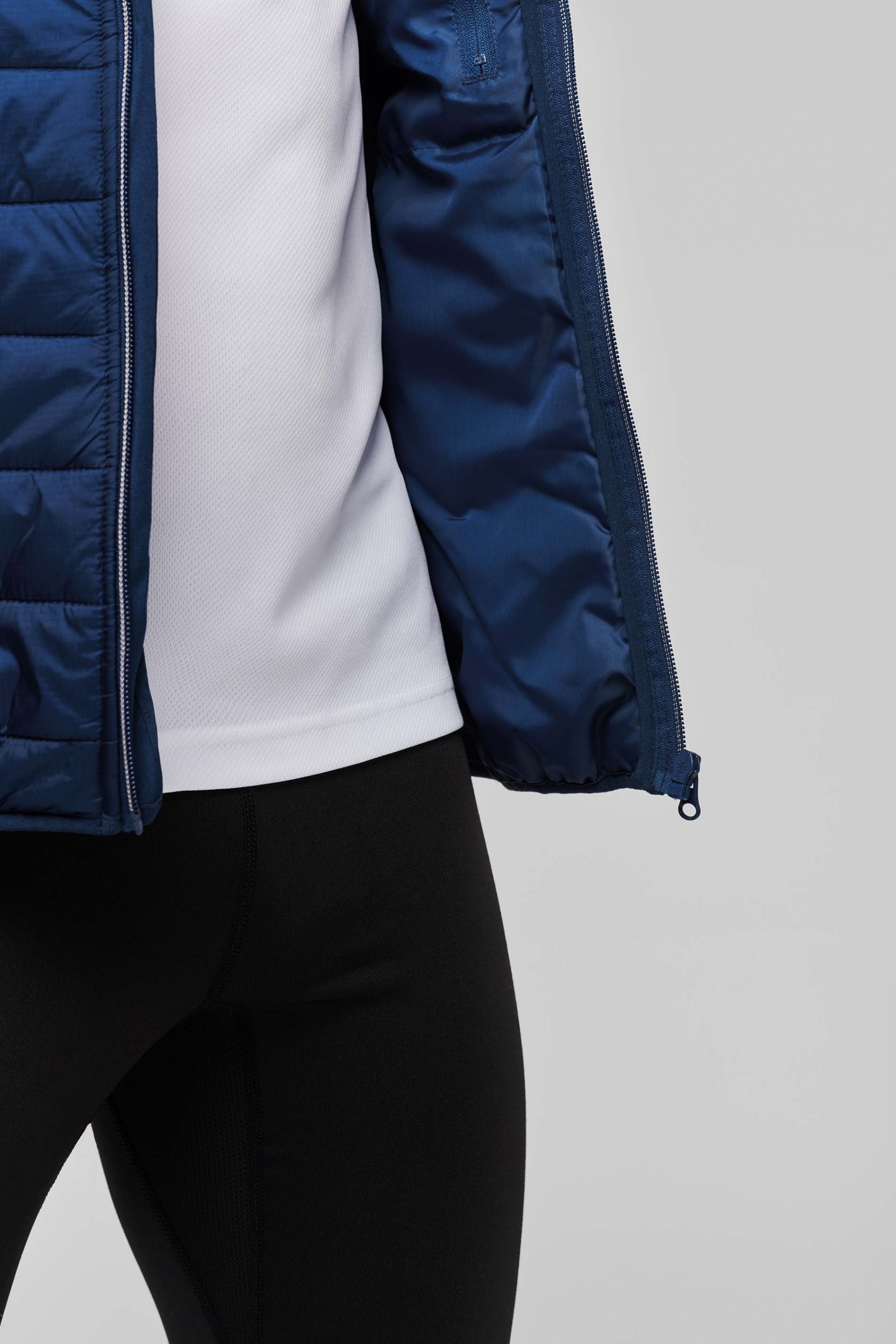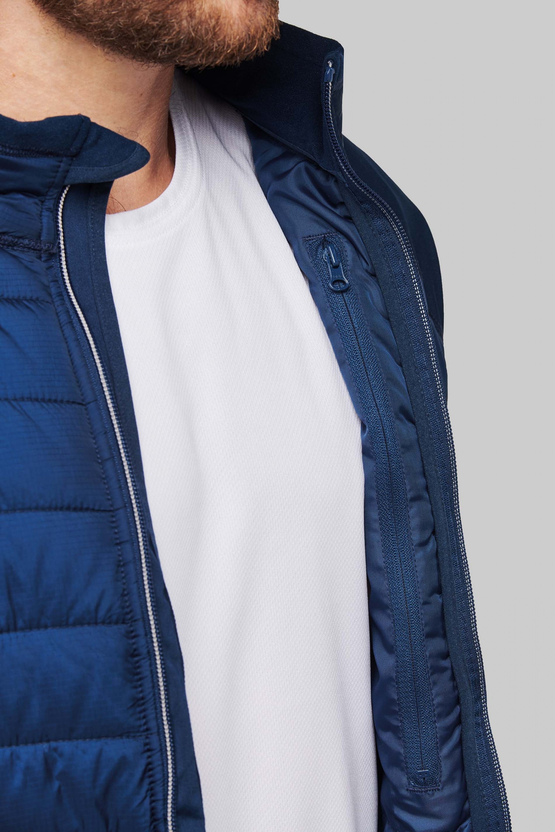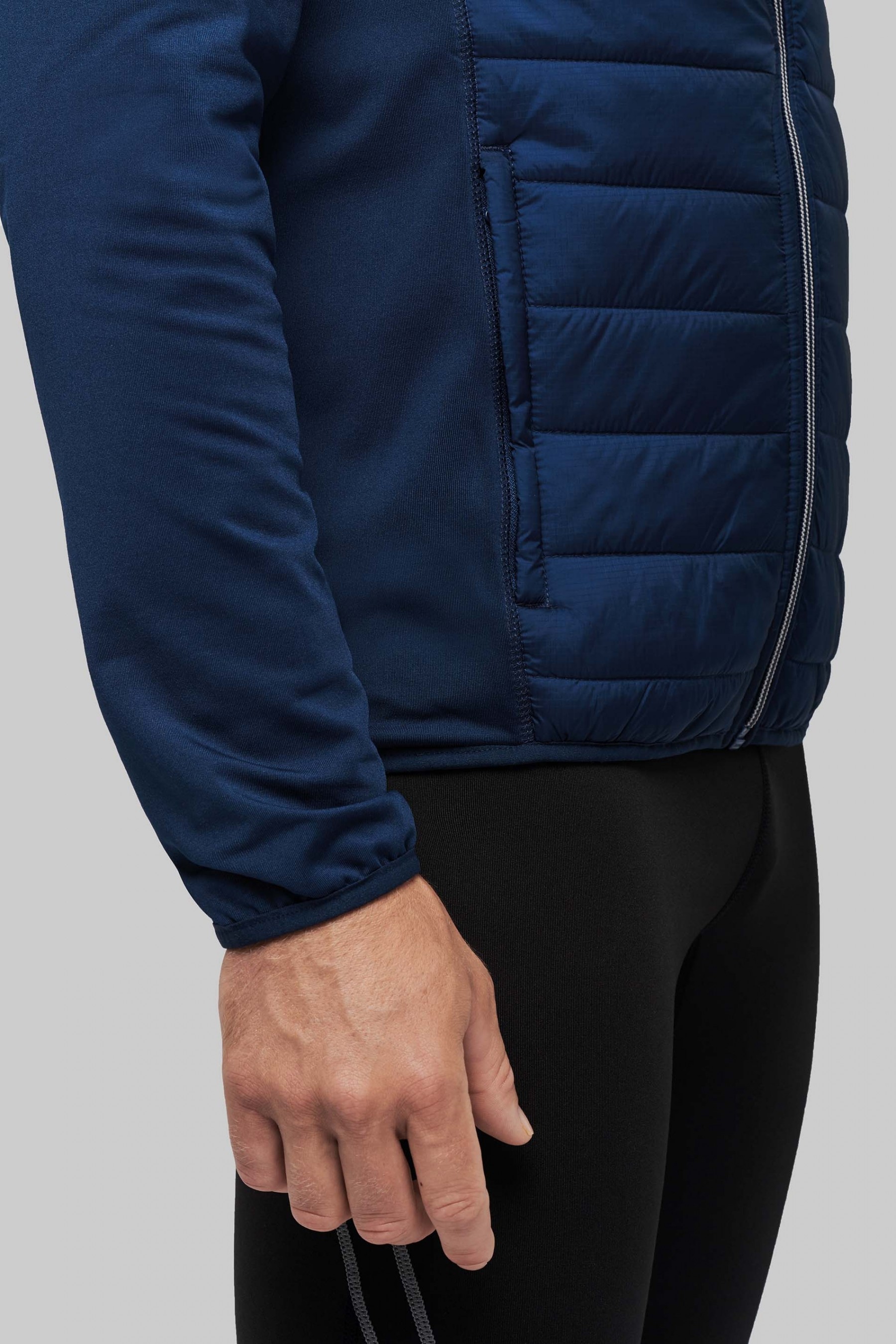 Extérieur : corps 100% polyamide ripstop, manches et dos 90% polyester / 10% élasthanne. Garniture intérieure 100% polyester. Matière ultra confortable avec traitement déperlant. 2 poches zippées devant. Fermeture zippée contrastée. Biais élastiqué au col, bas de manches et de vêtement.